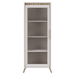 Materiál: laminovaná DTD/fóliovaná MDF/PVC fólie/sklo Barva: kašmír/dub sonoma Rozměry (ŠxHxV): 61x45x152,5 cm Tloušťka materiálu: 1,6-1,9 cm Jednodveřová Dvířka se sklem Tloušťka skla: 0,4 cm Leštěné sklo Kalené sklo Drážkované sklo Průhledné sklo Policová S úchytkou Materiál úchytky: kov Na nožičkách Barva nožiček: přírodní Výška nožiček: 12 cm Panty Hrana : papír impregnovaný termosetovými polymery/PVC Tloušťka materiálu ABS: 0,5 mm Tloušťka dřevovláknité desky zadní strana/dno zásuvky: 0,3 cm Barva zadní strana/dno zásuvky: bílá Dekorativní frézování Moderní design Dodáváno v demontu