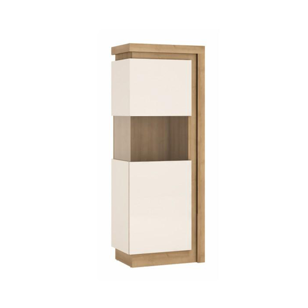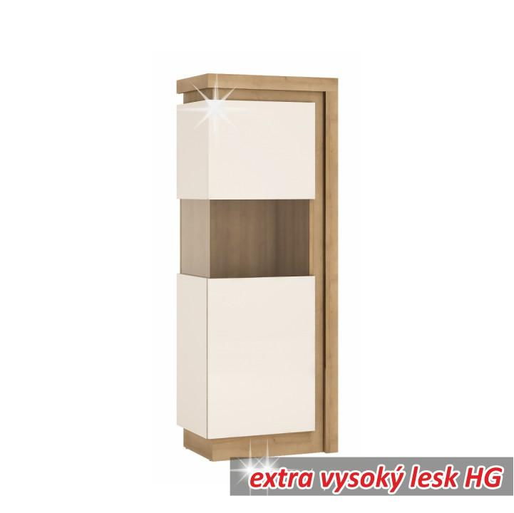 Vitrina LYOV01L, dub riviera / bílá s extra vysokým leskem, LEONARDO