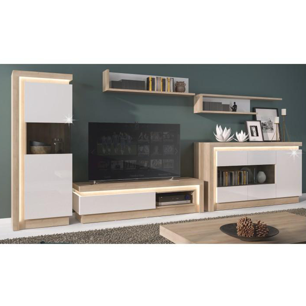 RTV stolek ze sektorové sestavy LEONARDO v provedení dub riviera / bílá s vysokým leskem. Rozměry (ŠxHxV): 130x42x42 cm Tloušťka materálu: 16 mm Systém tichého dorazu šuplíků LED osvětlení po obvodu je v ceně Dodávané v demontu Hmotnost: 36kg