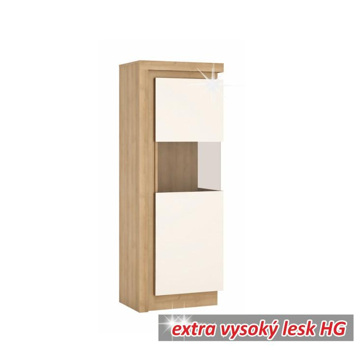 Vitrina LYOV01P, dub riviera / bílá s extra vysokým leskem, LEONARDO