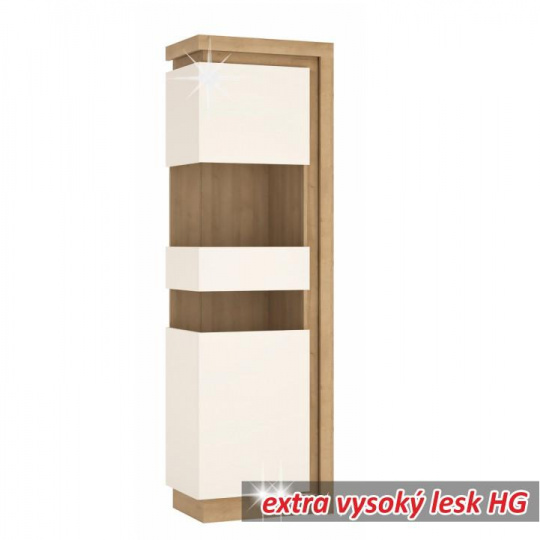 Vitrina LYOV03L, dub riviera / bílá s extra vysokým leskem, LEONARDO