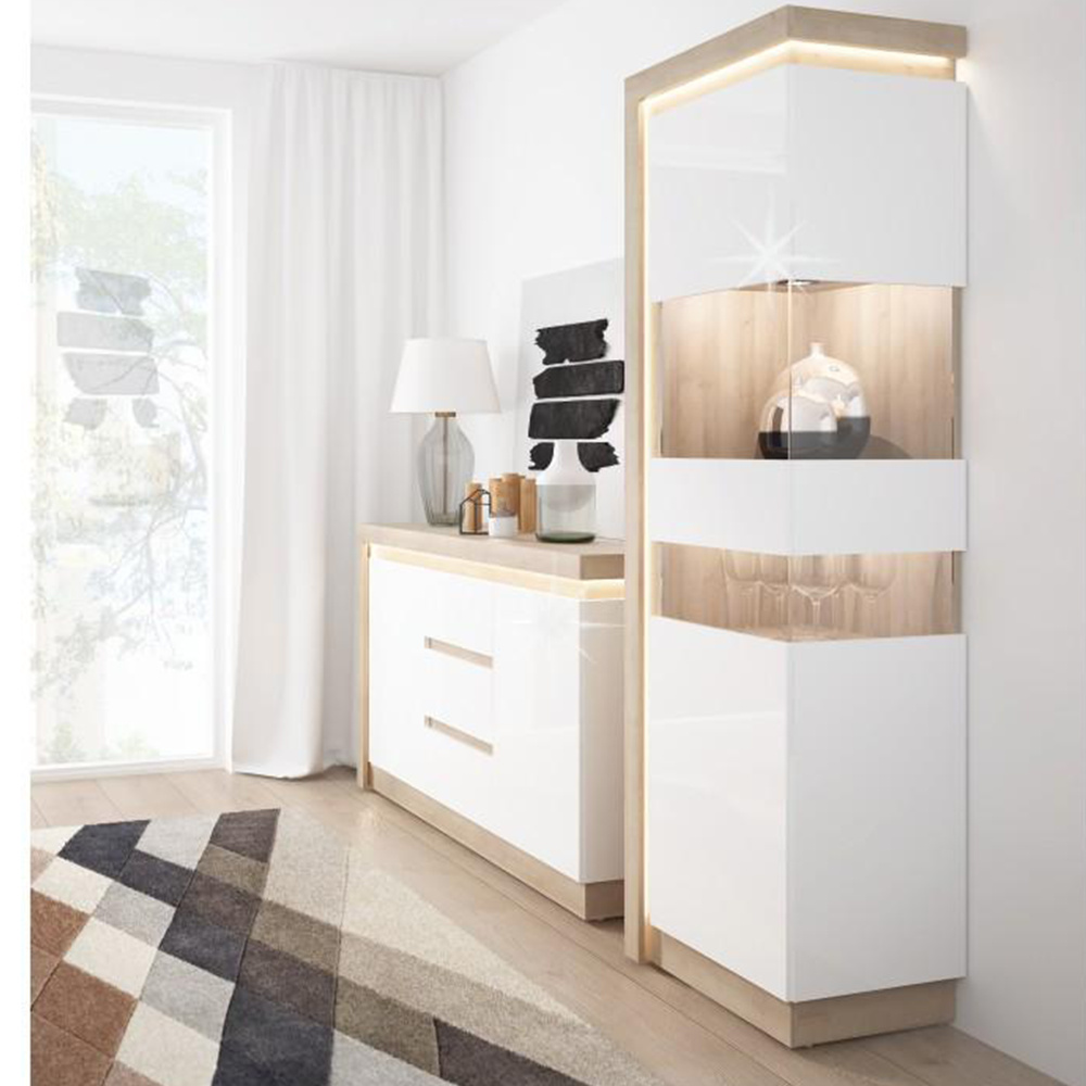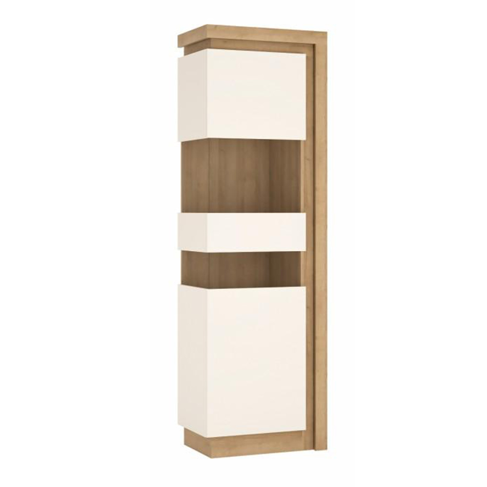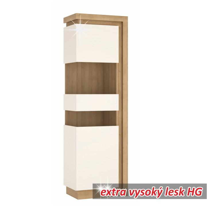 Vitrina LYOV03L, dub riviera / bílá s extra vysokým leskem, LEONARDO