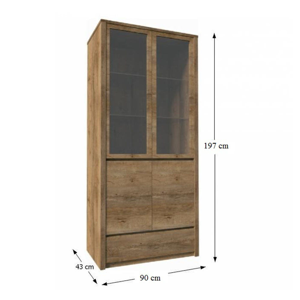 Vitrína, dub lefkas tmavý, MONTANA W2D