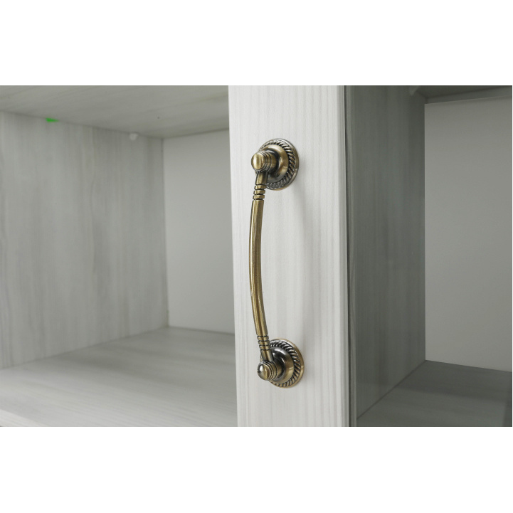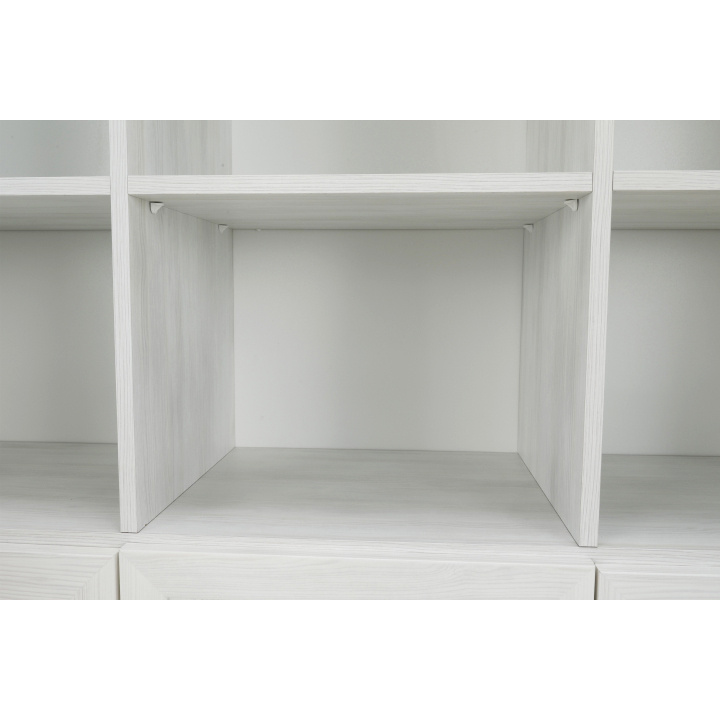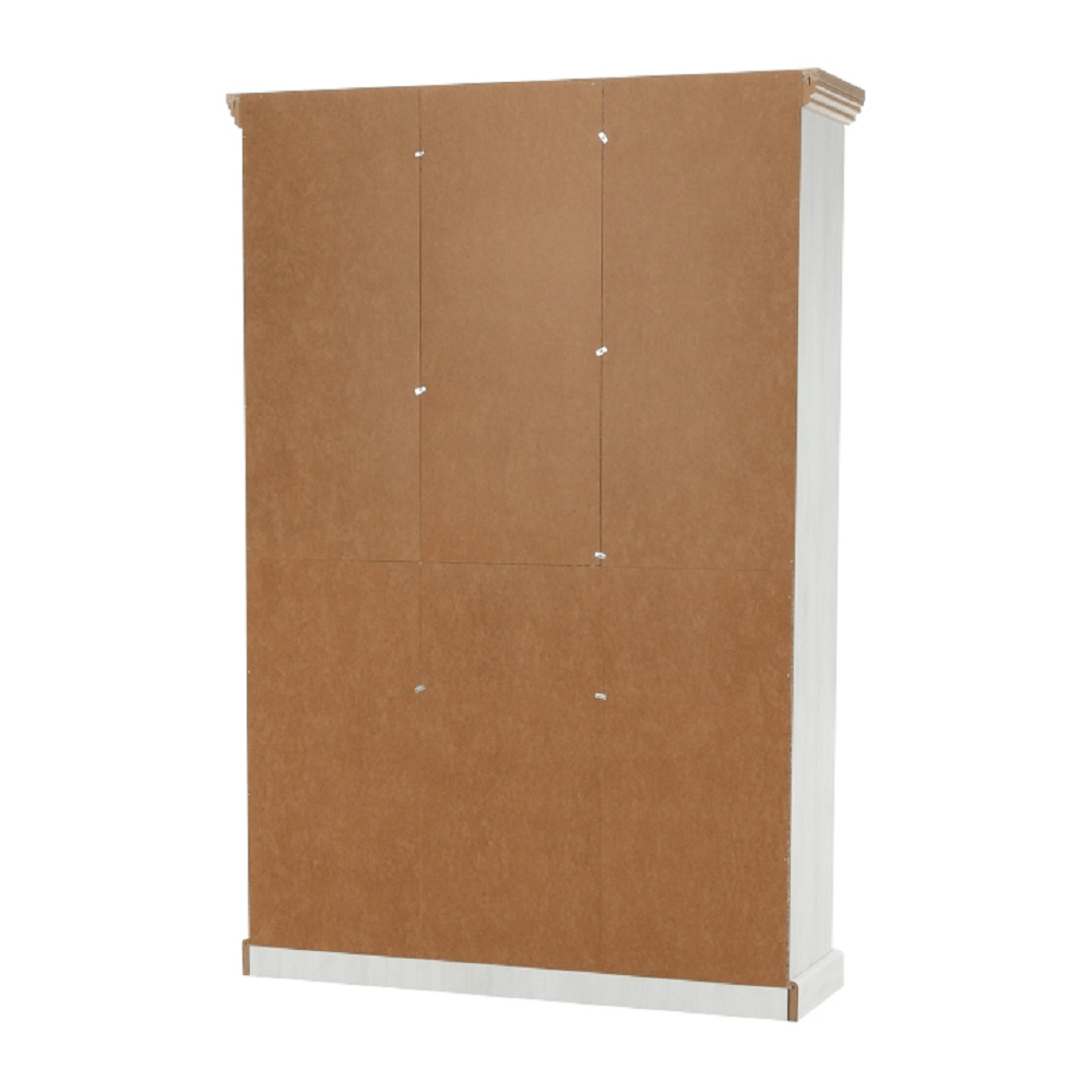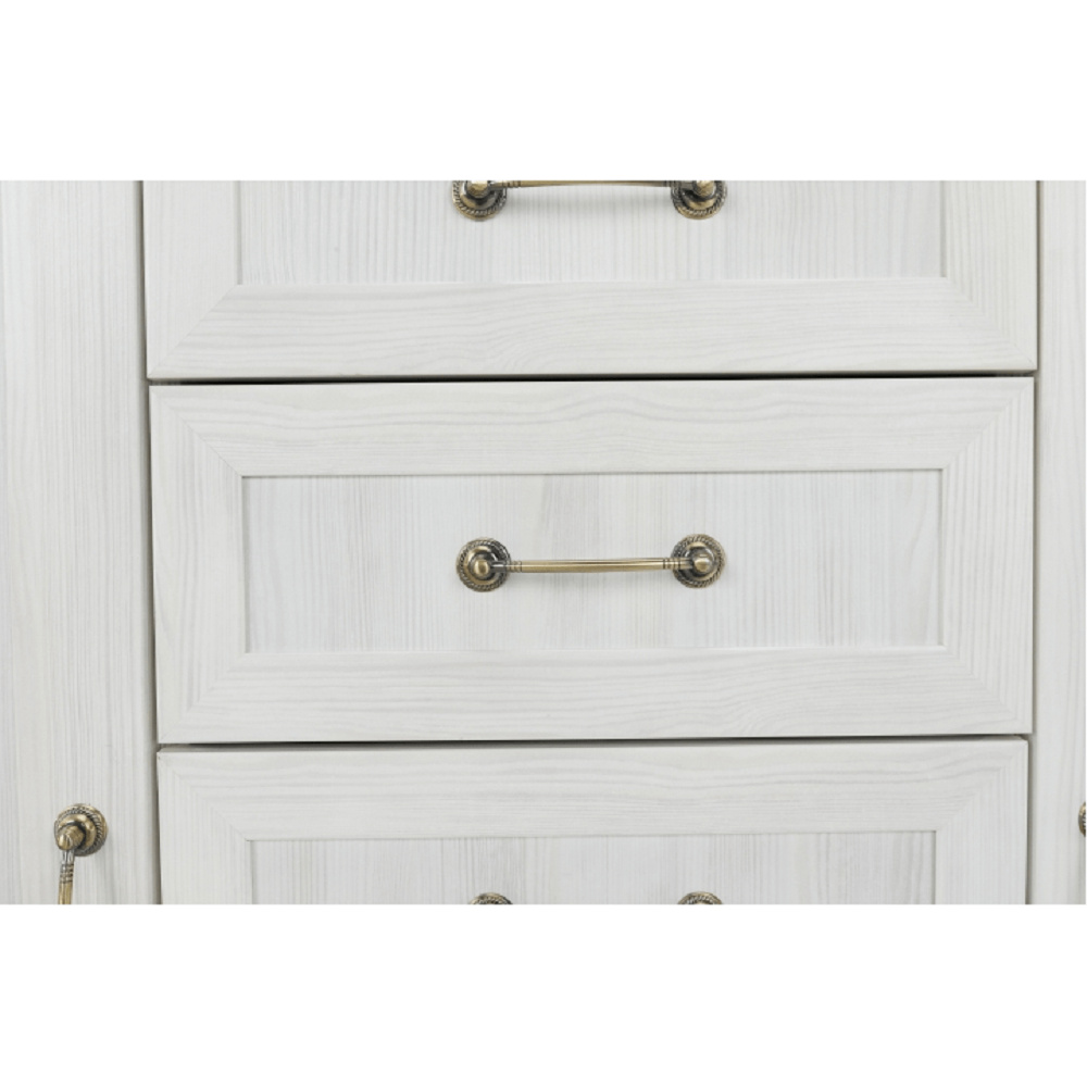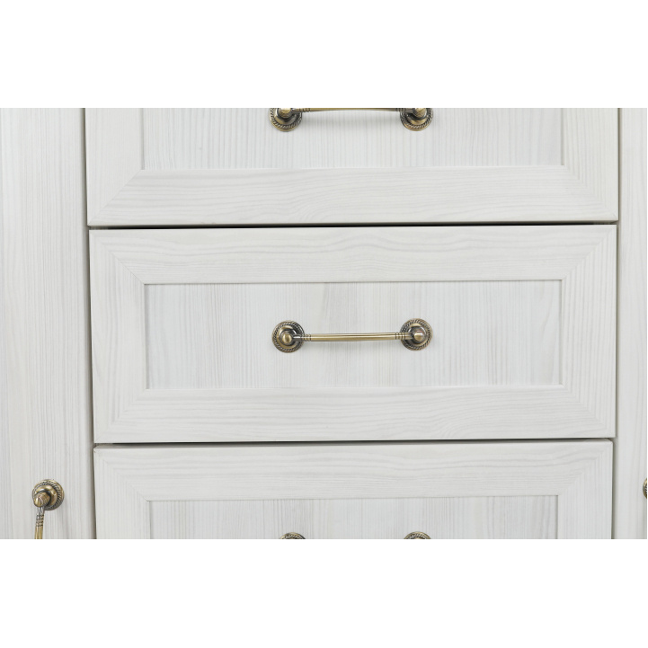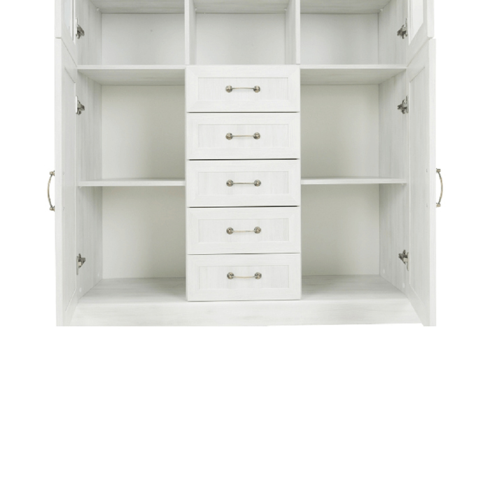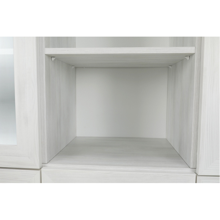 Vitrína W2D, čtyři skříní, pět šuplíků, otevřený úložný prostor s policemi z elegantního sektorového systému Royal v provensálském stylu. Vhodný na zařízení obývacích pokojů či ložnic. Materiál: korpus DTD laminovaná + ozdobné lišty, kovové úchytky Barevné provedení: sosna skandinávská v kombinaci s dubem divokým. Rozměry ŠxHxV: 127x39x187 cm Tloušťka materiálu korpus: 15 mm Tloušťka materiálu vrchní desky: 22 mm Dodávané v demontu .