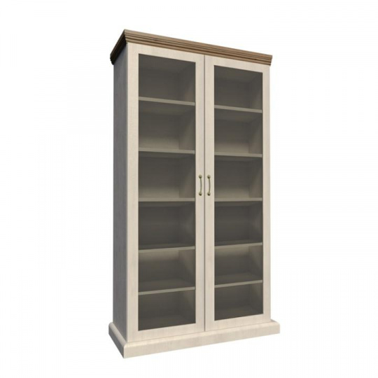 Vitrína WS, dvoudveřová s pěti policemi z elegantního sektorového systému Royal v provensálském stylu. Vhodná na zařízení obývacích pokojů či ložnic. Materiál: korpus DTD laminovaná + ozdobné lišty, kovové úchytky Barevné provedení: sosna skandinávská v kombinaci s dubem divokým. Rozměry ŠxHxV: 87x39x187 cm Tloušťka materiálu korpus: 15 mm Tloušťka materiálu vrchní desky: 22 mm Dodávané v demontu.