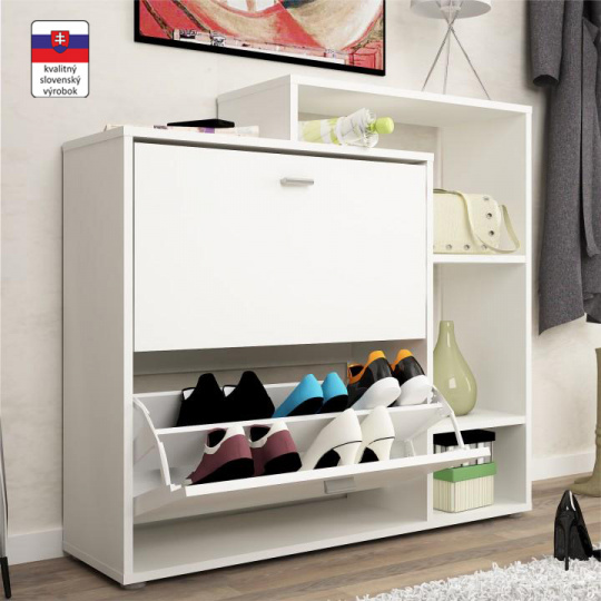 Výklopný dvouřadý botník, bílá, IZABELA