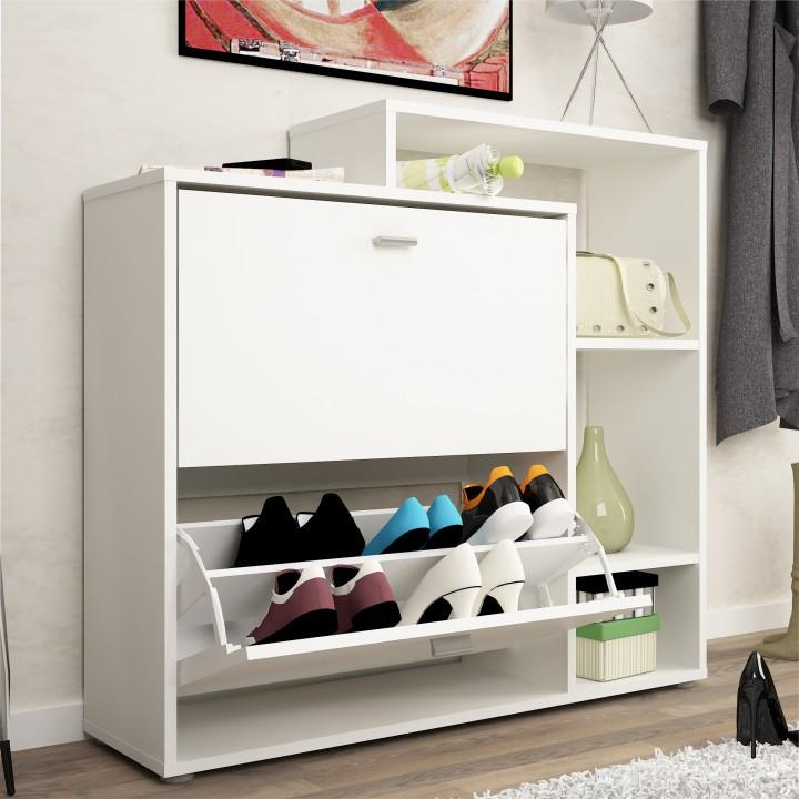 Výklopný dvouřadý botník, bílá, IZABELA