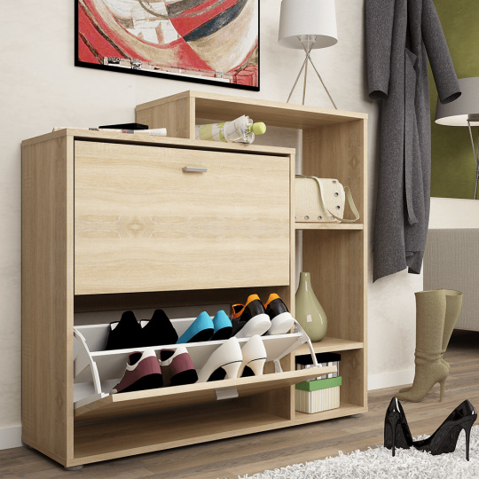 Výklopný dvouřadý botník, dub sonoma, IZABELA