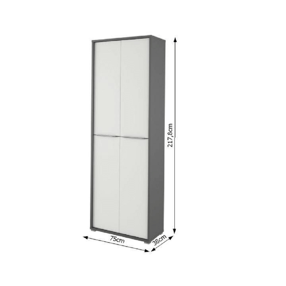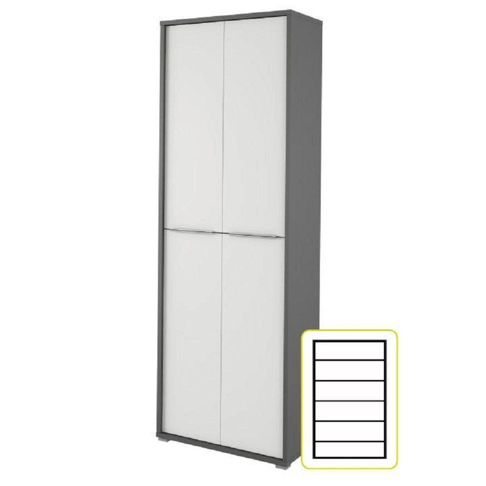 Vysoká skříň RIOMA NEW TYP 5 Barevné provedení: grafit / bílá Materiál: DTD laminovaná Rozměry (ŠxHxV): 75x38x217,8 cm Tloušťka materiálu: 16/22 mm Dodávané v demontu