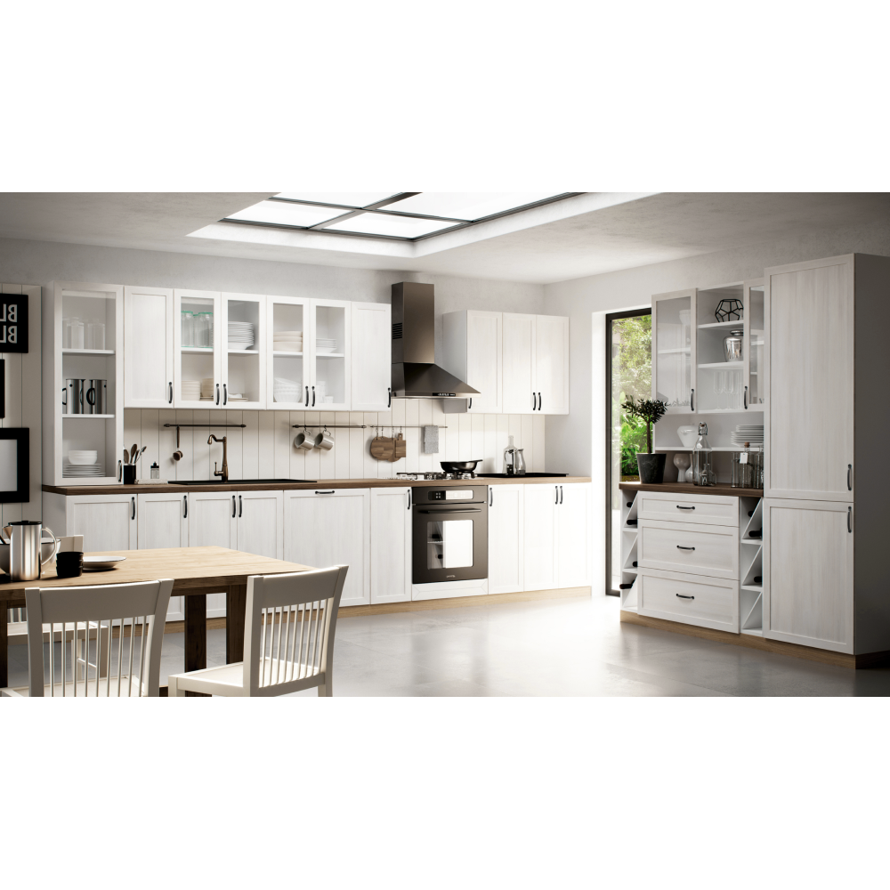 Horní skříňka s dvířky se sklem, ROYAL G60KSN Materiál: korpus je vyroben z kvalitní laminované dřevotřísky / kovová úchytka/sklo Barva: bílá / dvířka v provedení sosna skandinávská Rozměry ŠxHxV: 60x32x36 cm Tloušťka materiálu: 15 mm Dodávané v demontu. Spodní skříňky ke kuchyni ROYAL jsou dodávány bez pracovní desky a bez soklu. Praco