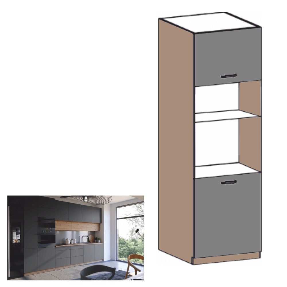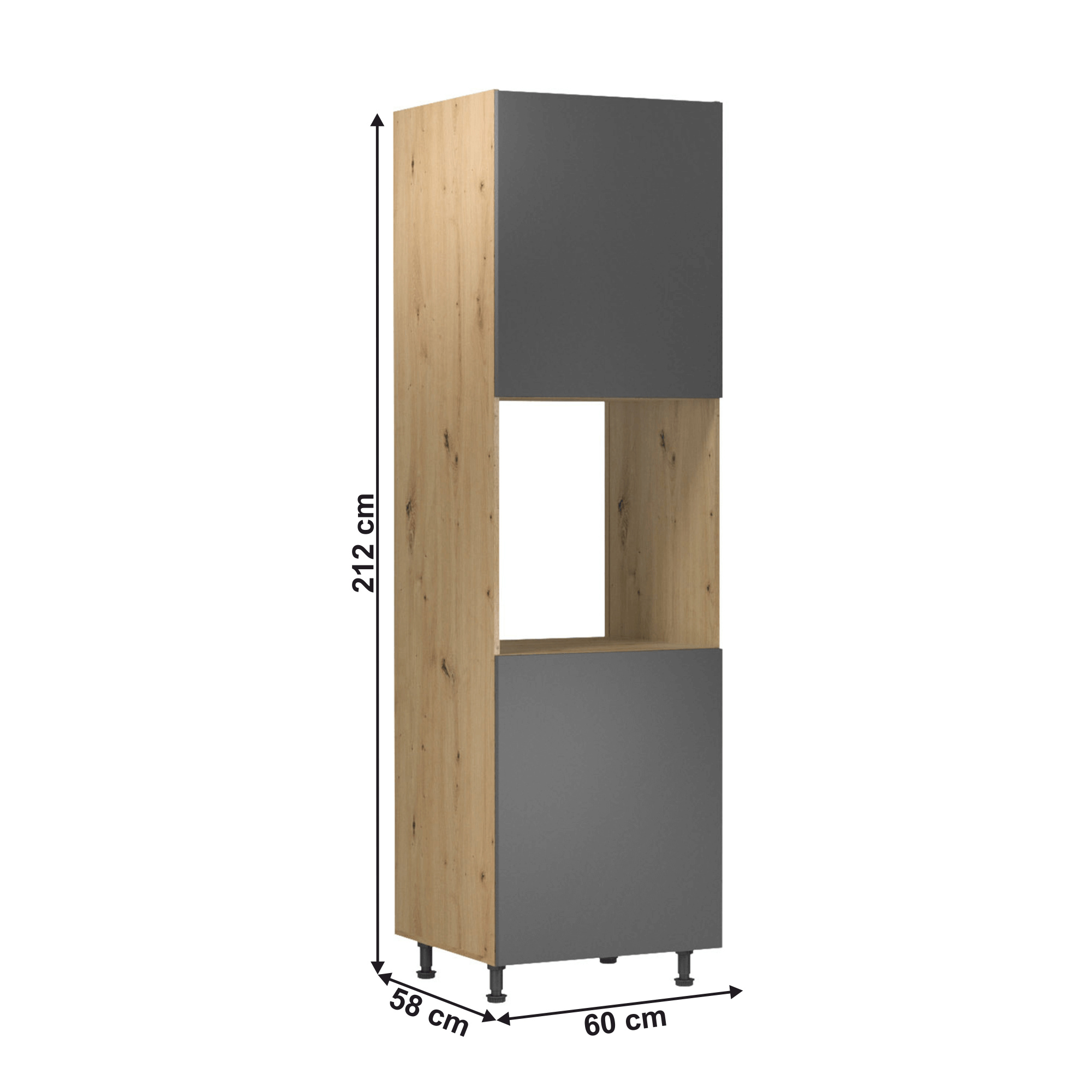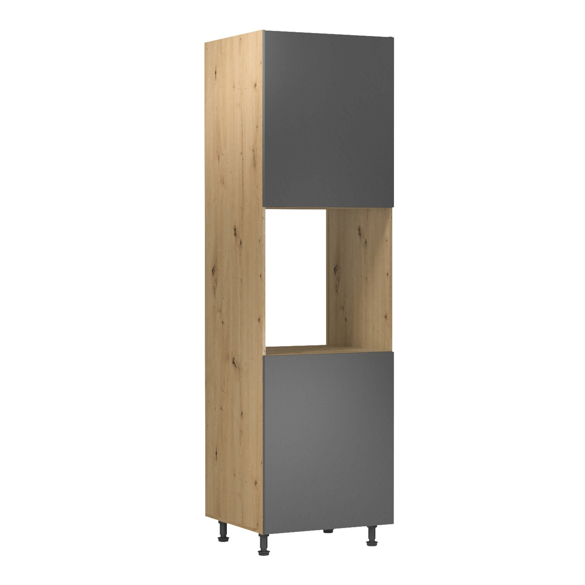 Vysoká skříňka na troubu a mikrovlnou troubu , dub artisan / šedý mat, LANGEN D60PM