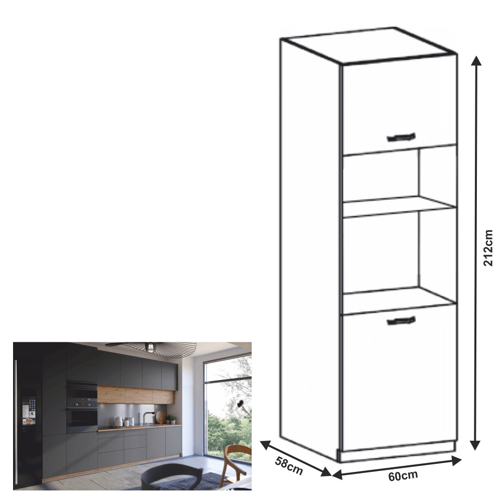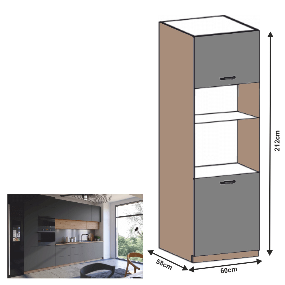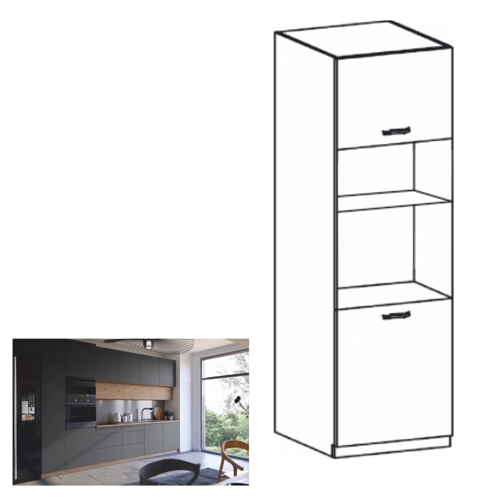 Vysoká skříňka na troubu a mikrovlnou troubu , dub artisan / šedý mat, LANGEN D60PM