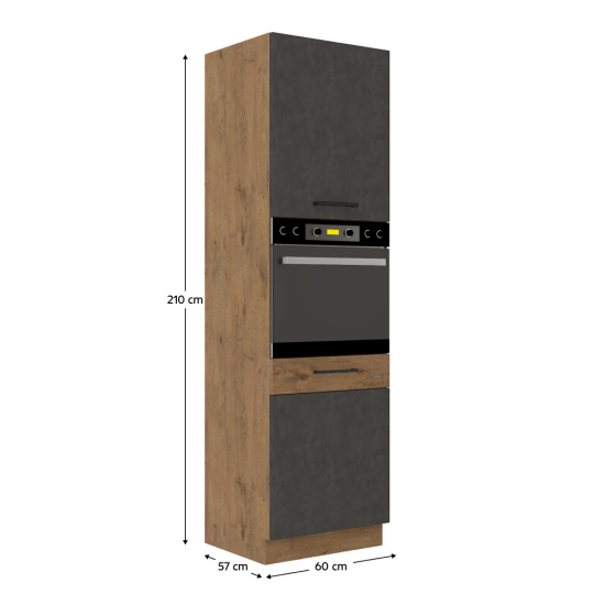 Vysoká skříňka VEGA 60 DP-210 2F Materiál: DTD laminovaná Barva: dub lancelot / šedá matná Rozměry (ŠxHxV): 60x57x210 cm Systém tichého zavírání dvířek Se spodní lištou Dodávané v demontu Spodní skříňky jsou dodávány včetně dolní lišty, bez pracovní desky. Možnost dokoupení pracovní desky dub lancelot za cenu 1 590 Kč/bm. Možnost dokoupit univerzální L / P dřez LAY ON.