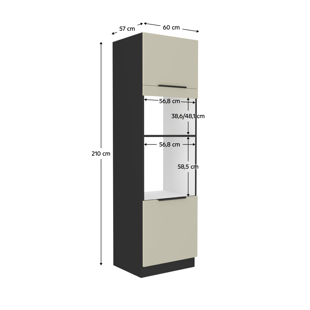 Vysoká skříňka na troubu a mikrovlnou troubu, kašmír/černá, ARAKA 60 DPM-210 2F