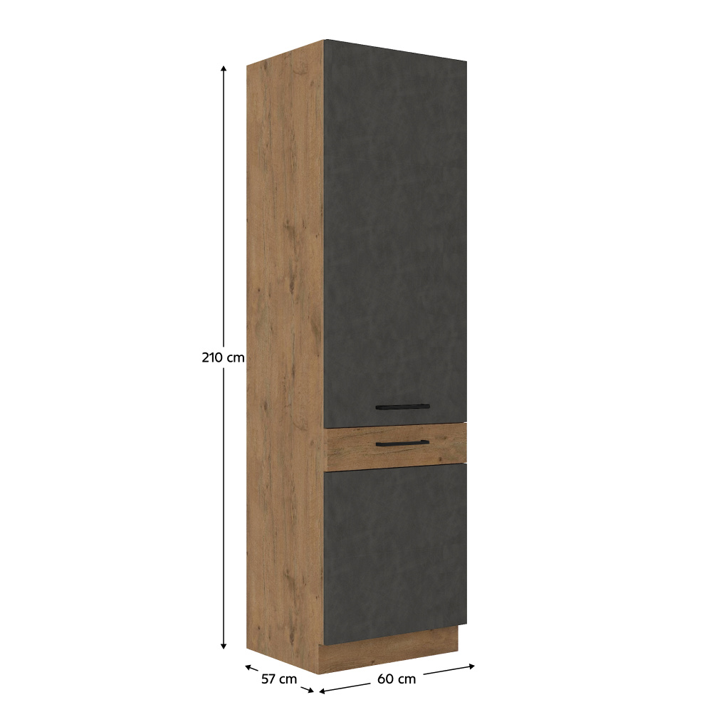 Vysoká skříňka Vega 60 DK-210 2F Materiál: DTD laminovaná Barva: dub lancelot / šedá matná Rozměry (ŠxHxV): 60x57x210 cm Skříňka bez pracovní desky Systém tichého zavírání dvířek Včetně spodní lišty Dodávané v demontu Spodní skříňky jsou dodávány včetně dolní lišty, bez pracovní desky. Možnost dokoupit pracovní desku dub lancelot v ceně: 1590 Kč/bm. Možnost dokoupit univerzální L / P dřez LAY ON.
