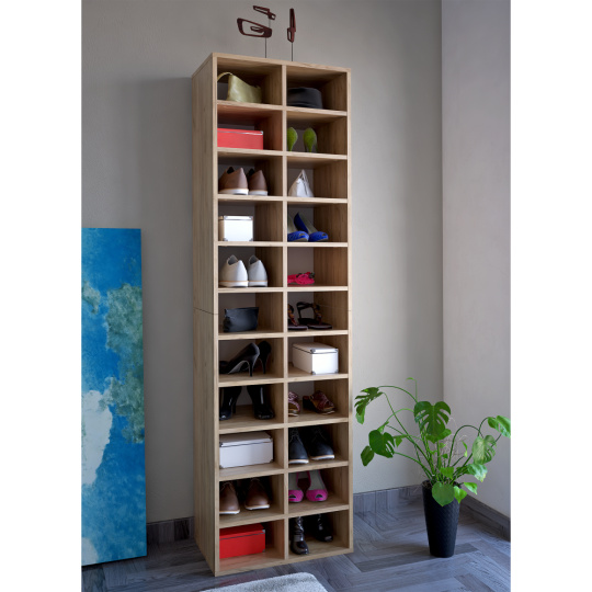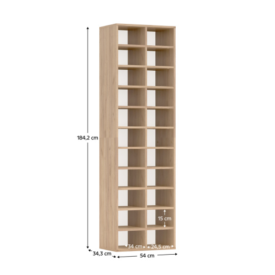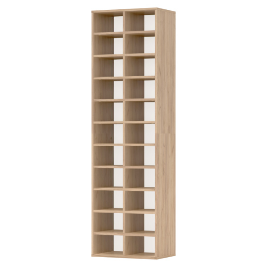 Materiál: DTD laminovaná Barva: dub artisan Rozměry (ŠxHxV): 54x34,3x184,2 cm Tloušťka materiálu: 1,6 cm Otevřený úložný prostor Dvouřadý Univerzální Policový Rozměry police (ŠxHxV): 24,5x34x15 cm Nosnost police: 5 kg Na kluzácích Víceúčelový Kvalitní slovenský výrobek Doporučujeme připevnit ke zdi Dodáváno v demontu