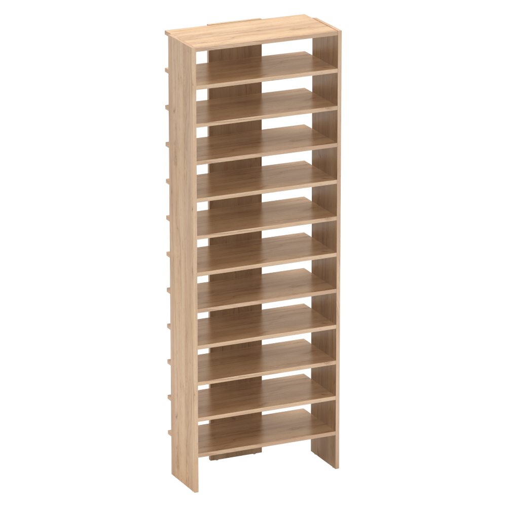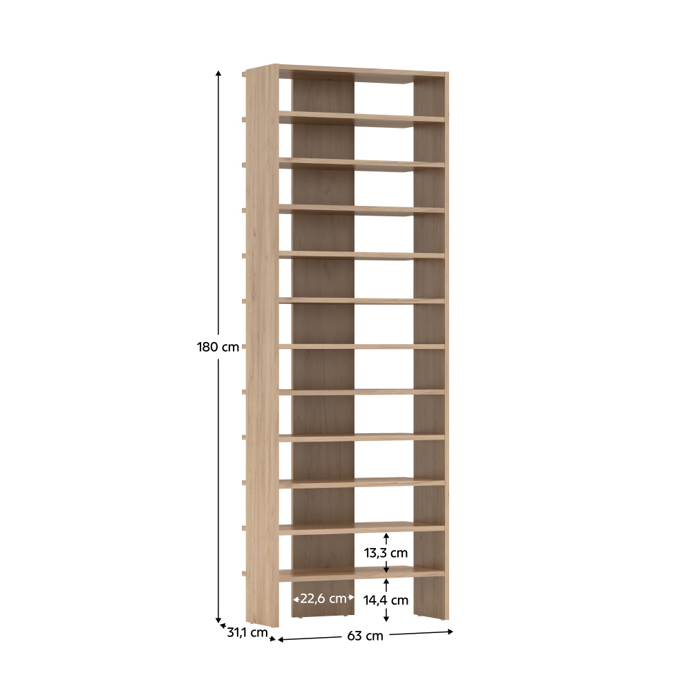 Materiál: DTD laminovaná Barva: dub artisan Rozměry (ŠxHxV): 63x31,1x180 cm Tloušťka materiálu: 1,6 cm Otevřený úložný prostor Policový Nosnost police: 5 kg Výška mezi policemi: 13,3 cm Víceúčelový Praktický Na kluzácích Kvalitní slovenský výrobek Doporučujeme připevnit ke stěně Dodáváno v demontu
