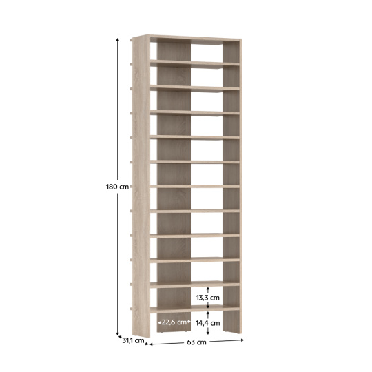 Materiál: DTD laminovaná Barva: dub sonoma Rozměry (ŠxHxV): 63x31,1x180 cm Tloušťka materiálu: 1,6 cm Otevřený úložný prostor Policový Nosnost police: 5 kg Výška mezi policemi: 13,3 cm Víceúčelový Praktický Na kluzácích Kvalitní slovenský výrobek Doporučujeme připevnit ke stěně Dodáváno v demontu