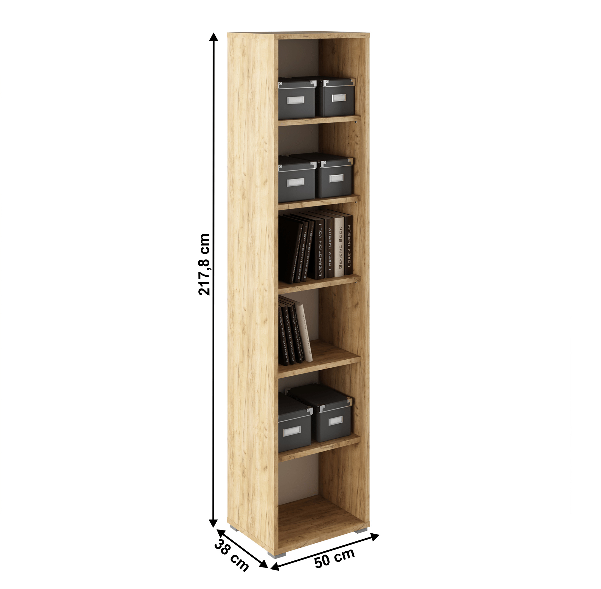 Vysoký regál RIOMA TYP 02 Barevné provedení: dub artisan / bílá Materiál: DTD laminovaná Rozměry (ŠxHxV): 50x38x217,8 cm Tloušťka materiálu: 22 mm Dodávané v demontu.