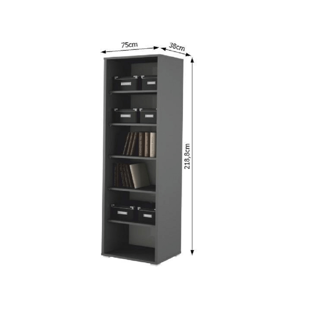 Vysoký regál Rioma NEW TYP 01 Barevné provedení: grafit Materiál: DTD laminovaná Rozměry (ŠxHxV): 75x38x217,8 cm Tloušťka materiálu: 22 mm Dodávané v demontu.