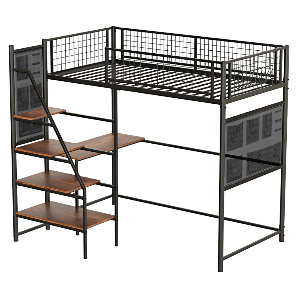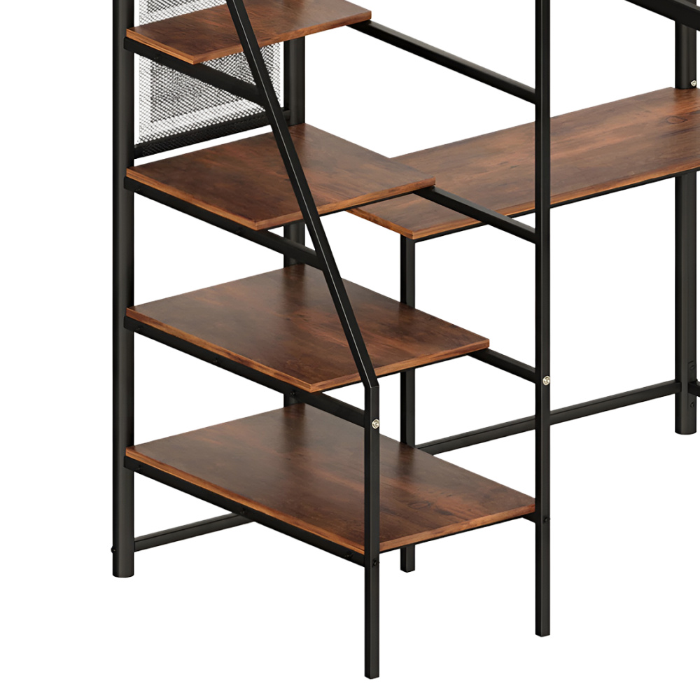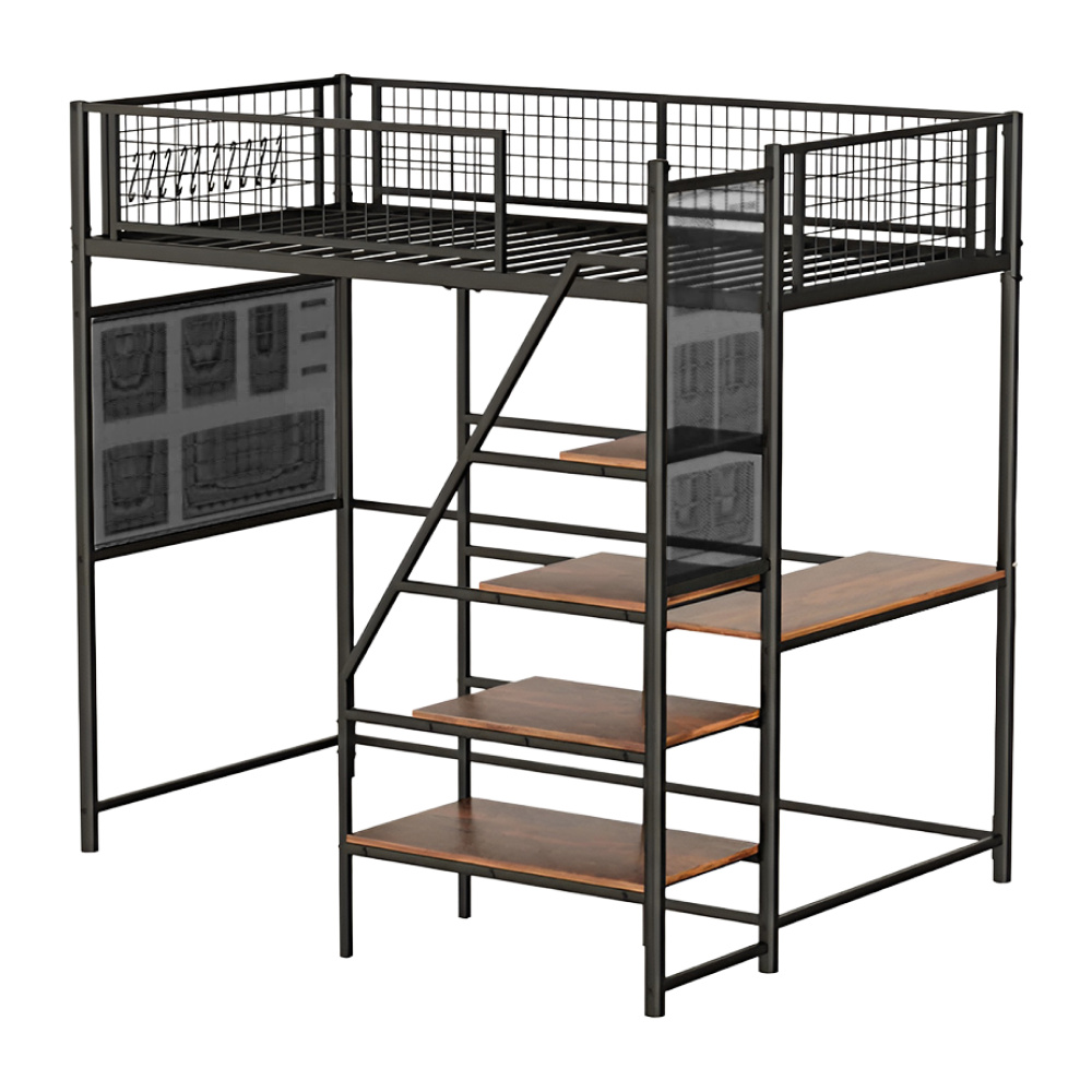 Materiál: kov/melaminová MDF/síťovina Barva: černá/rustikální dřevo Rozměry (ŠxHxV): 204x142,4x180 cm Plocha na spaní (ŠxD): 90x200 cm Výška pod lůžkem: 146 cm Psací stůl pod lůžkem Rozměry stolku (ŠxH): 89x39 cm Výška od země po stolek: 70 cm Nosnost stolku: 80 kg Dodáváno se schůdky Šířka schůdků: 46,5 cm Výška mezi schůdky: 28 cm Možnost namontovat schůdky na pravou nebo levou stranu Dodáváno se zábranou Výška zábrany: 33 cm Úložný prostor Boční síťované kapsy Nosnost sáčku: 2 kg Dodáváno bez matrace Doporučená maximální výška matrace: 15 cm Zapuštění matrace: 1,2 cm Dodáváno s kovovým roštem Prostor mezi kovovými lamelami: 5 cm Nosnost: 150 kg Vhodná do dětských, studentských i menších pokojů Univerzální Plastové nožičky Moderní a praktická Industriální styl Doporučujeme připevnit ke zdi Dodáváno v demontu