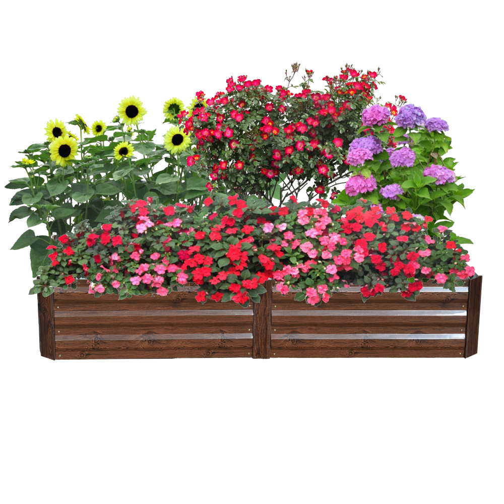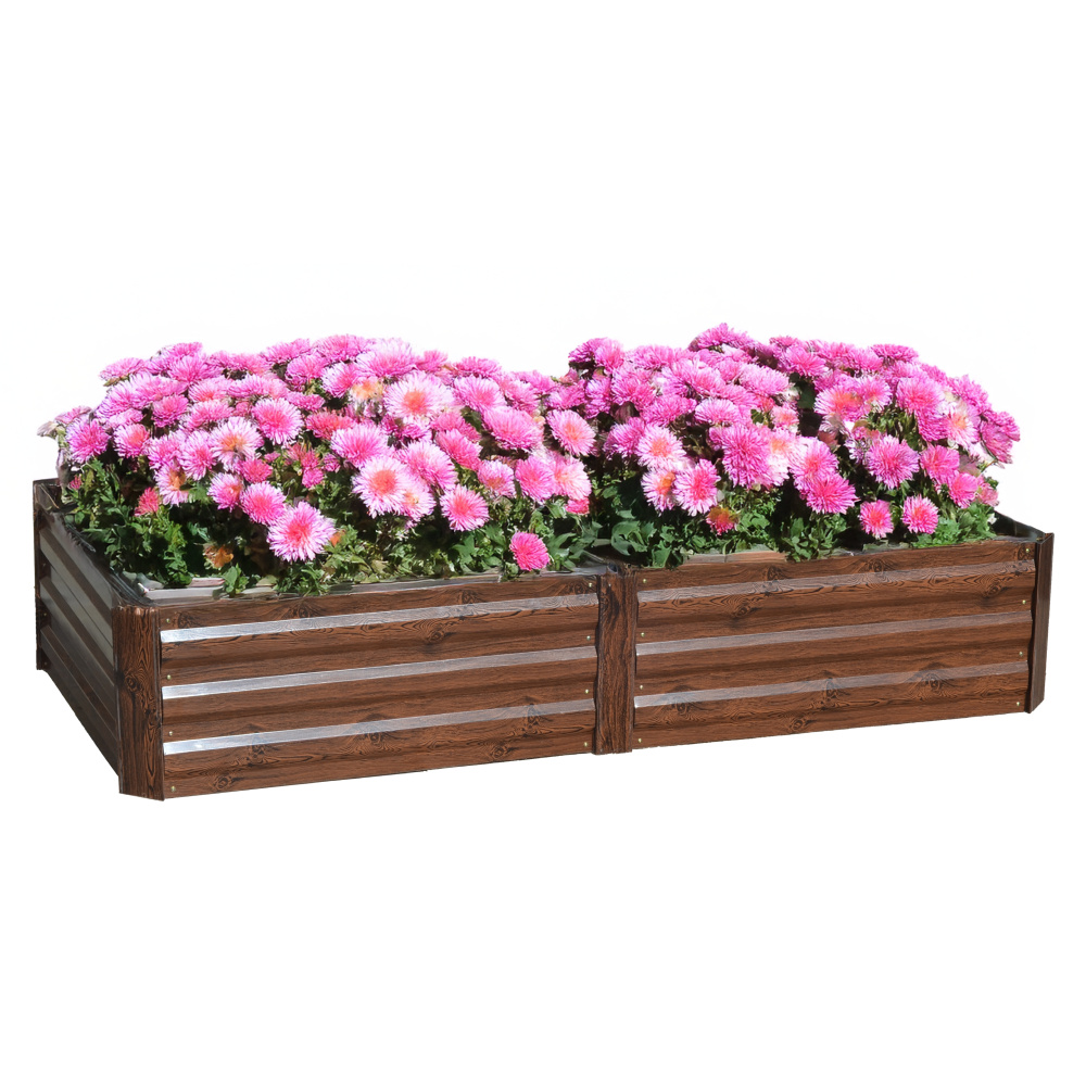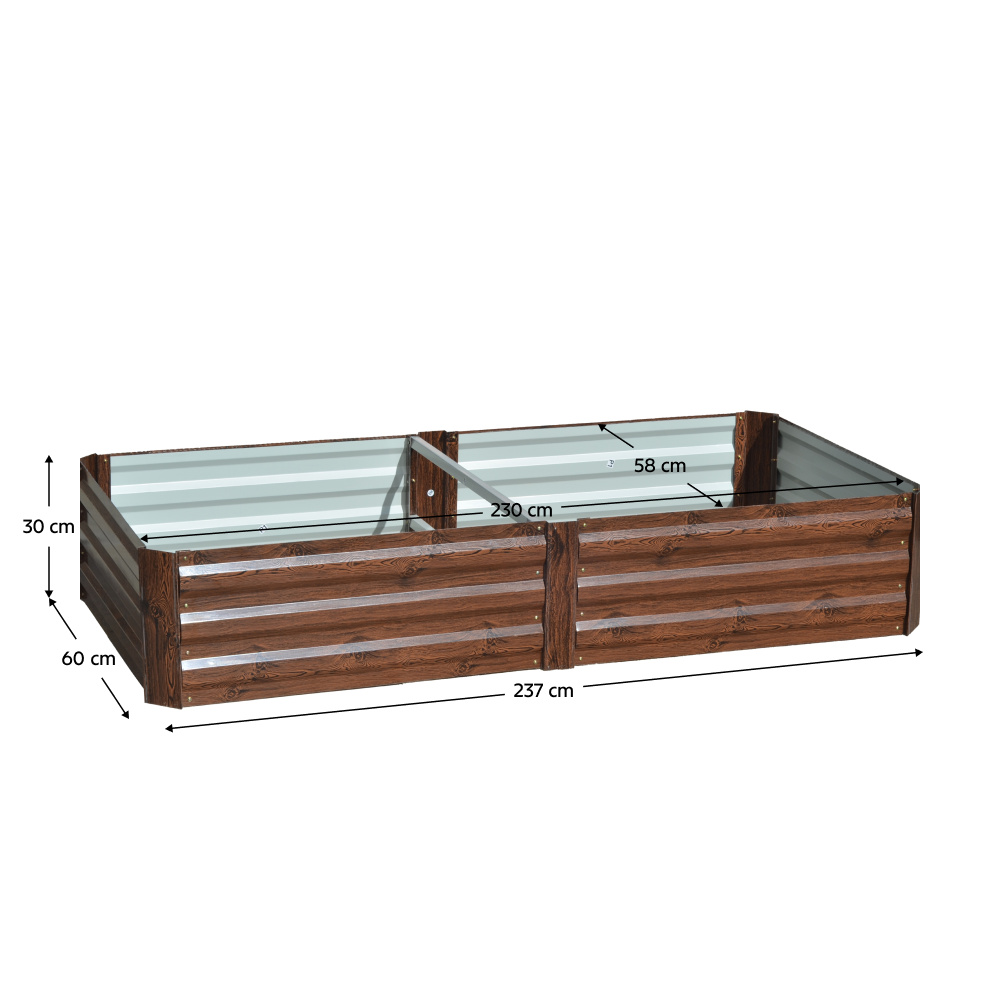 Materiál záhon: ocel/hliník Barva: hnědá/vzor dřevo Vnější rozměry (ŠxHxV): 235x60x30 cm Vnitřní rozměry(ŠxHxV): 233x58x30 cm Tloušťka materiálu: 0,3 mm, roh 0,8 mm Vhodný do interiéru i exteriéru Dodáván bez dna/podlahy Jednoduchá montáž Ocel s povrchovou práškovou úpravou Na bylinky, květiny nebo zeleninu Pro rostliny s rozdílnými nároky na pěstování Vyšší ochrana před hlemýždi Nízká náchylnost k růstu plevelů Ideální do míst s půdou chudou na živiny Vhodný i pro nejmenší zahrady Moderní design Všestranné využití Vhodný jako dárek Dodáván v demontu