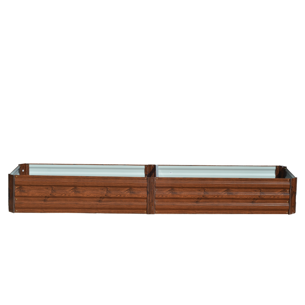 Materiál záhon: ocel/hliník Barva: hnědá/vzor dřevo Vnější rozměry (ŠxHxV): 160x80x30 cm Vnitřní rozměry(ŠxHxV): 155x75x30 cm Tloušťka materiálu: 0,3 mm, roh 0,8 mm Vhodný do interiéru i exteriéru Dodáván bez dna/podlahy Jednoduchá montáž Ocel s povrchovou práškovou úpravou Na bylinky, květiny nebo zeleninu Pro rostliny s rozdílnými nároky na pěstování Vyšší ochrana před hlemýždi Nízká náchylnost k růstu plevelů Ideální do míst s půdou chudou na živiny Vhodný i pro nejmenší zahrady Moderní design Všestranné využití Vhodný jako dárek Dodáván v demontu