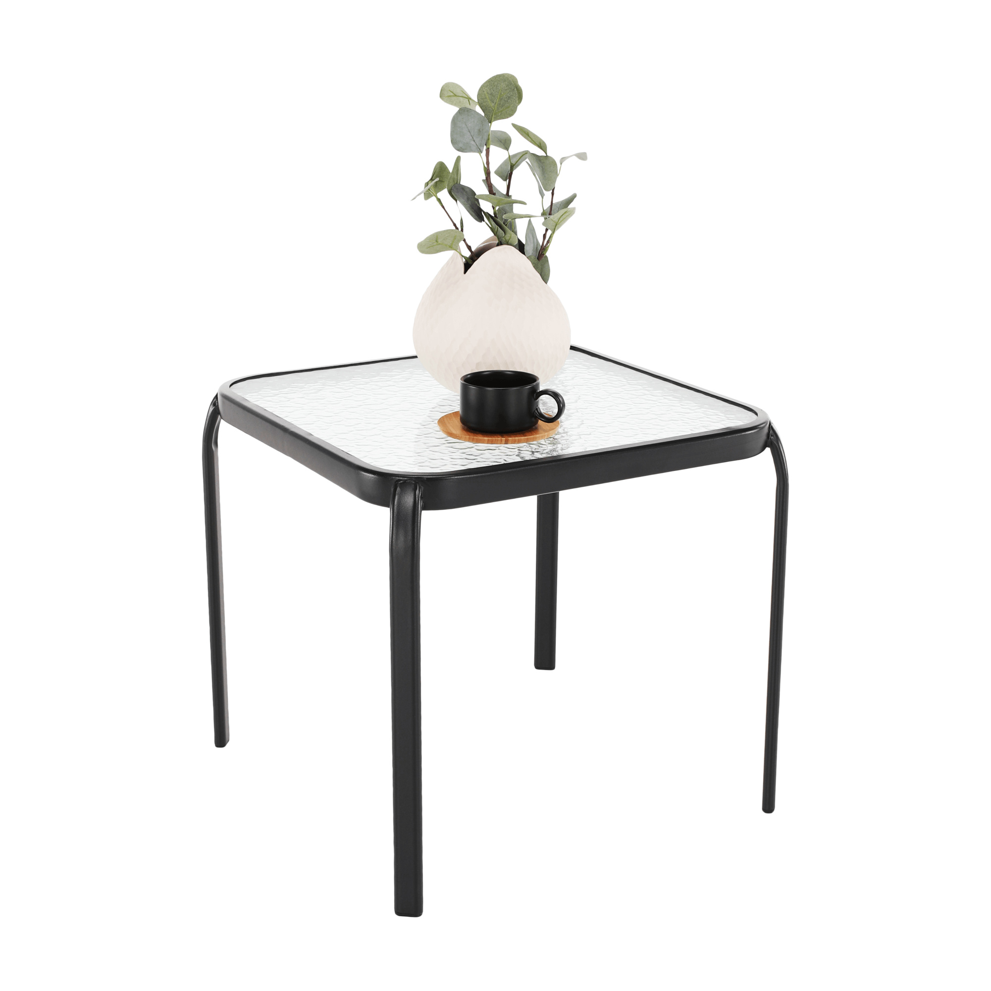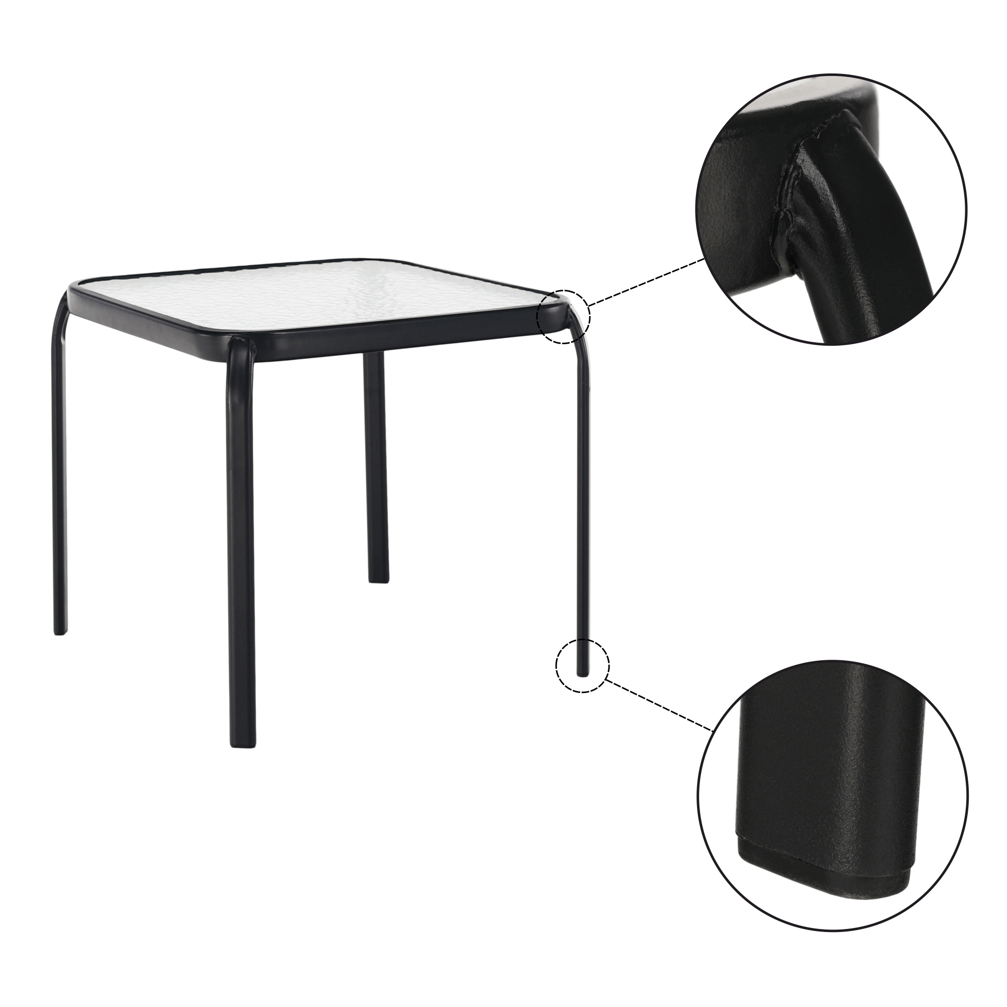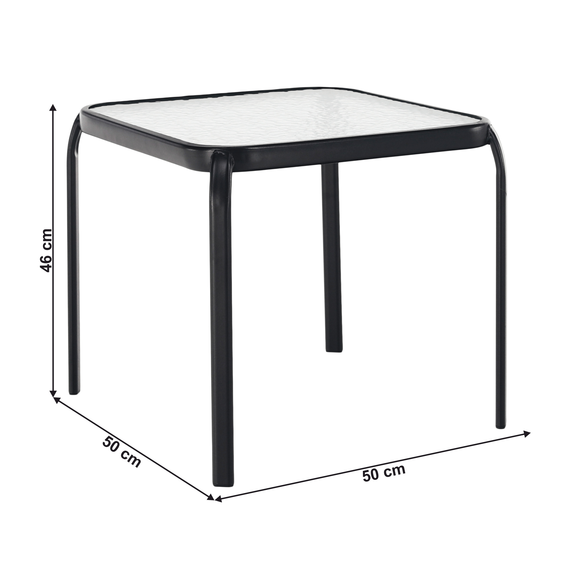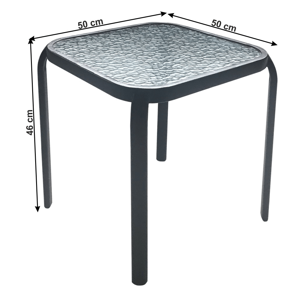 Materiál: tvrzené sklo / ocel Barva: černá Rozměry (ŠxHxV): 50x50x46 cm Príruční stolek zahradní Dodávané v demontu