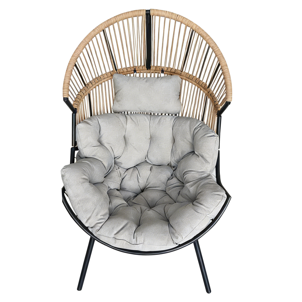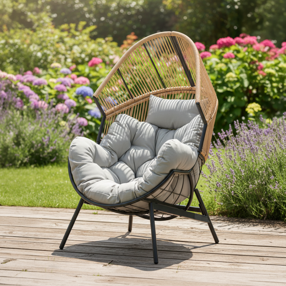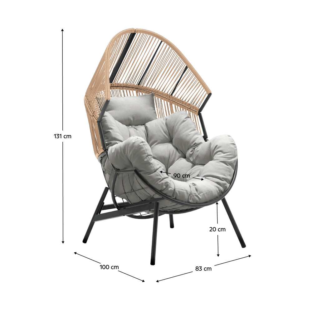 Materiál: ocel/umělý ratan/tkanina Oděruodolnost textilie podle testu Martindale: 95 000 oděrů Barva: černá/hnědá/šedá Rozměry (ŠxHxV): 83x100x131 cm Výška sedu: 20 cm Hloubka sedu: 90 cm Nosnost: 150 kg Vhodné do interiéru i exteriéru V exteriéru doporučujeme chránit výrobek před nepříznivými povětrnostními vlivy Dodáváno s polštáři Rozměr polštářku (ŠxHxV): 100x90x31 cm Rozměr polštáře (ŠxHxV): 40x23x16 cm Voděodolné potahy Polypropylenové vlákno Na nožičkách Dodáváno v demontu