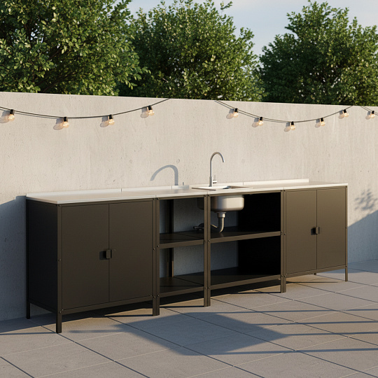 Zahradní kuchyňský ostrůvek s dřezem, kov, černá, INES TYP 4