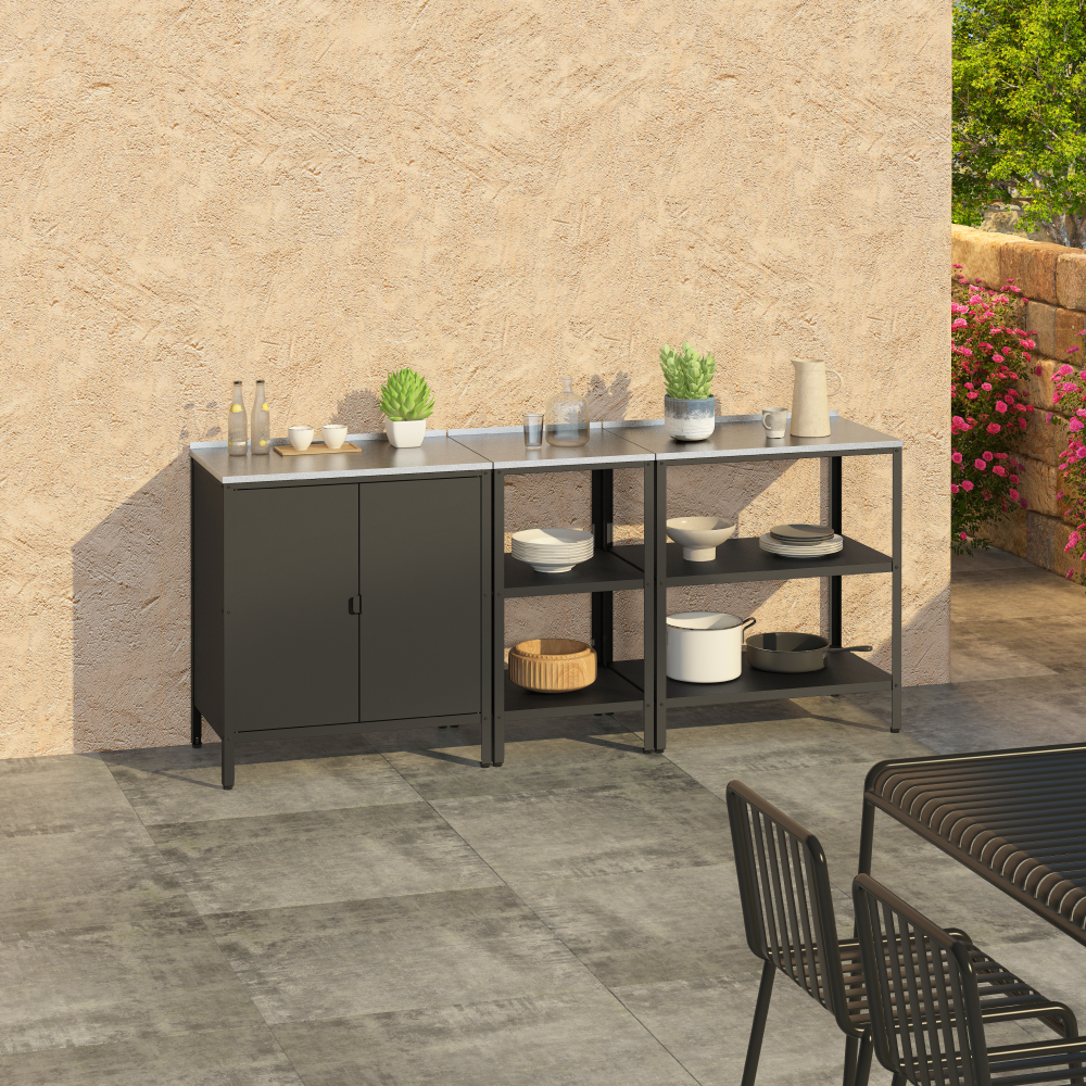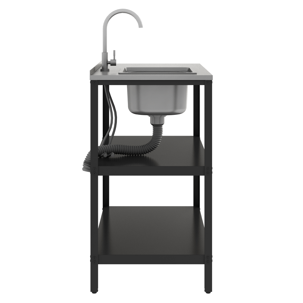 Zahradní kuchyňský ostrůvek s dřezem, kov, černá, INES TYP 4