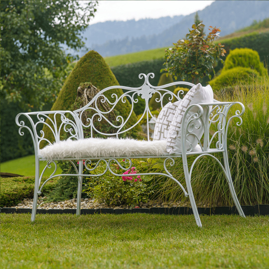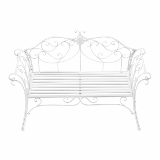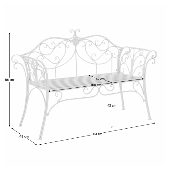 Materiál: kov Barva: bílá Rozměry (ŠxHxV): 131x48x86 cm Výška sedu: 43 cm Hloubka sedu: 42 cm Šířka sedu: 100 cm Nosnost: 150 kg Dodáváno bez polštářů Romantický vzhled S ozdobnými prvky Dodáváno v demontu