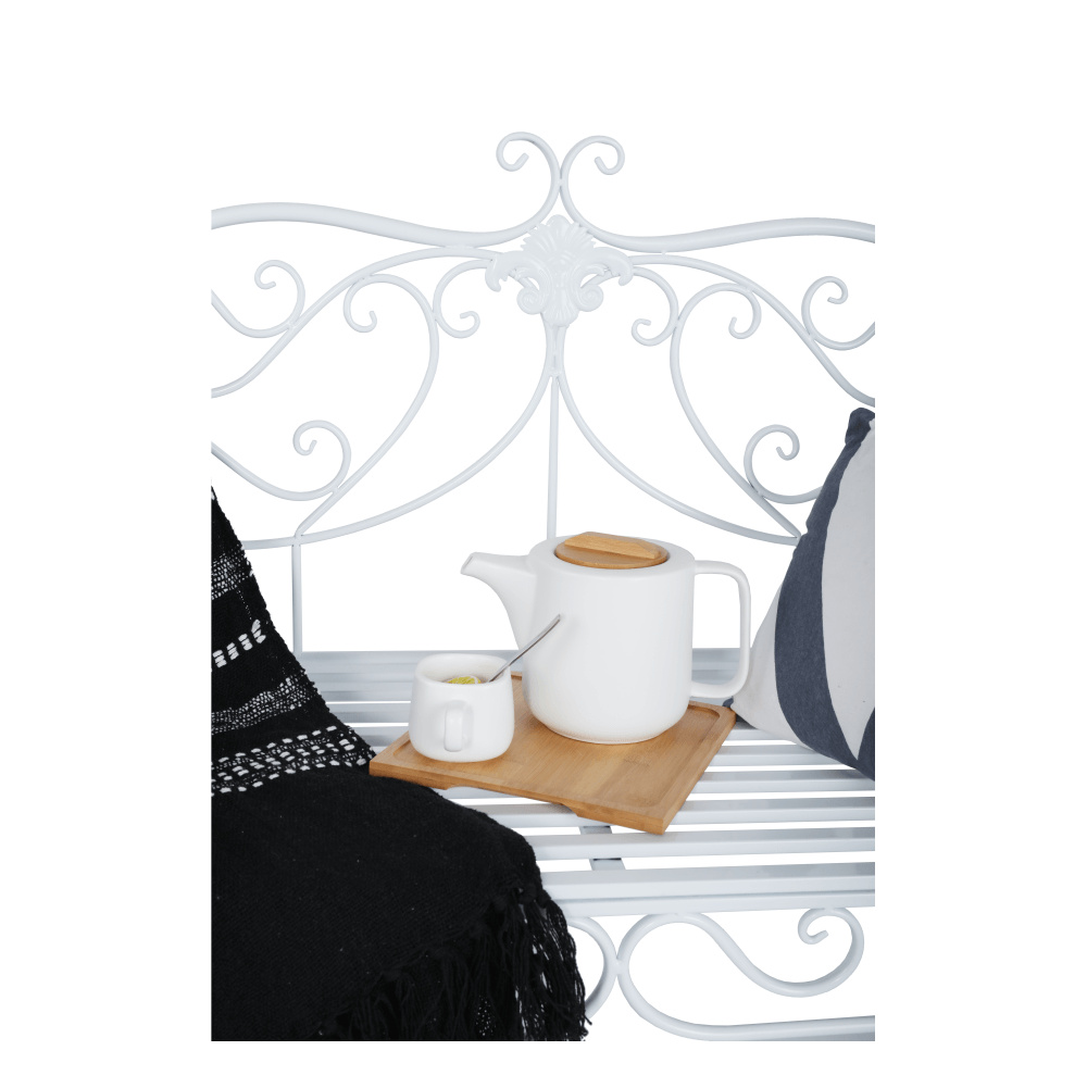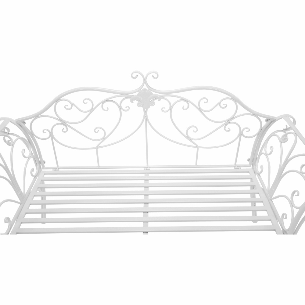 Materiál: kov Barva: bílá Rozměry (ŠxHxV): 131x48x86 cm Výška sedu: 43 cm Hloubka sedu: 42 cm Šířka sedu: 100 cm Nosnost: 150 kg Dodáváno bez polštářů Romantický vzhled S ozdobnými prvky Dodáváno v demontu