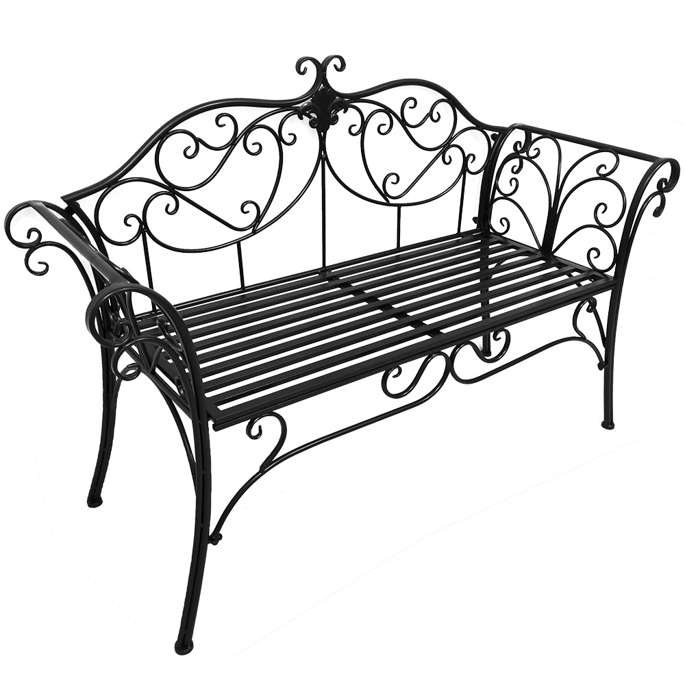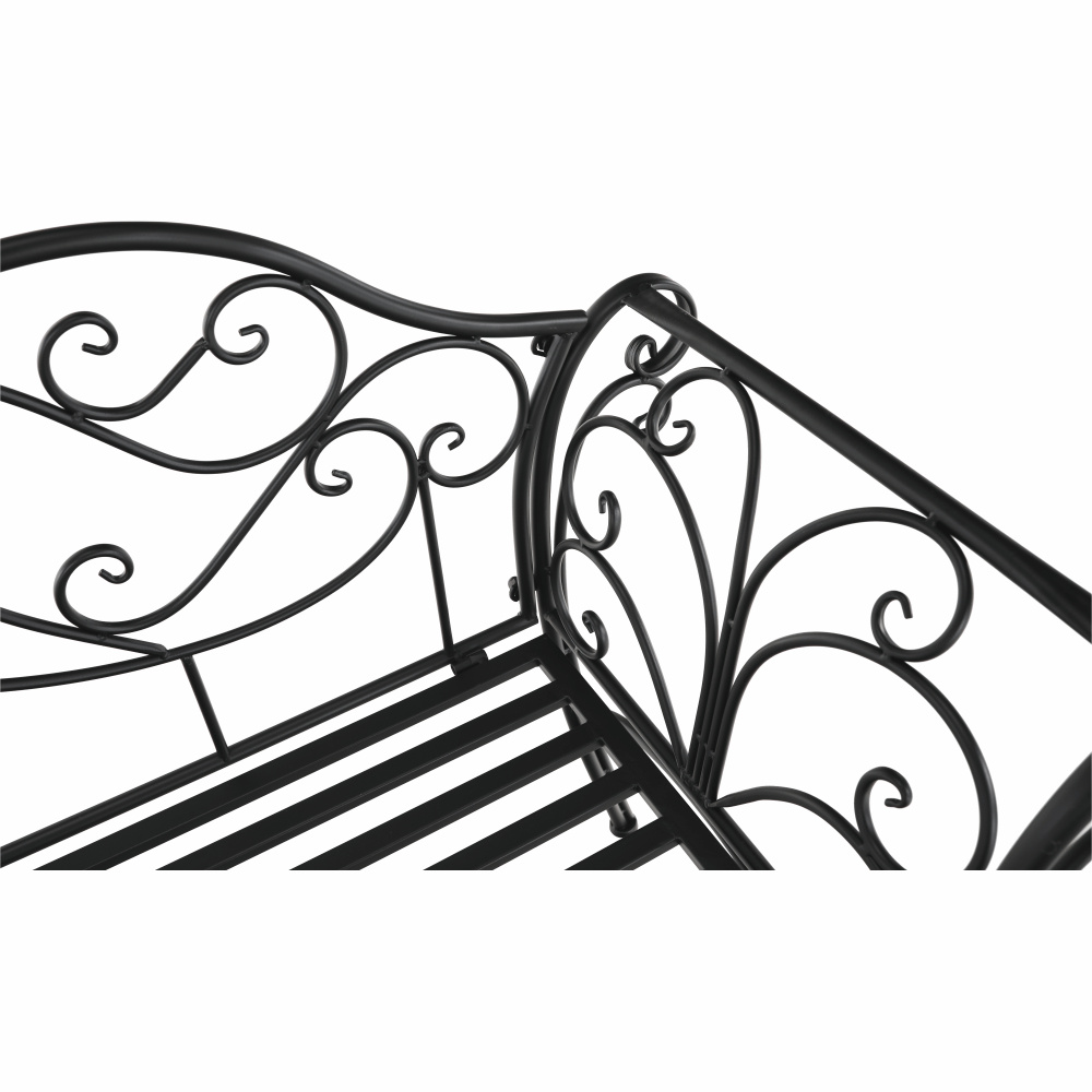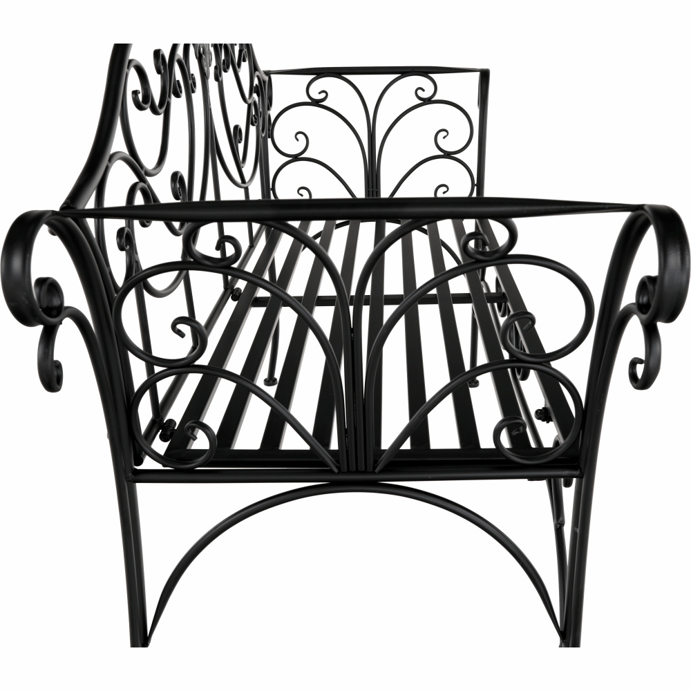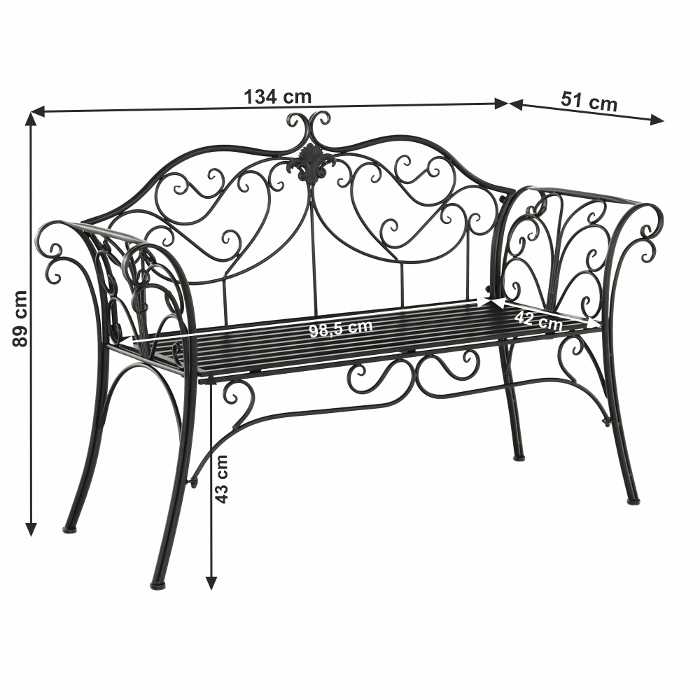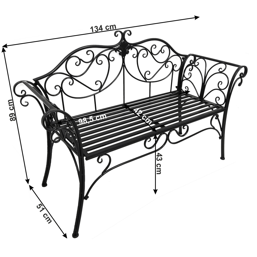 Materiál: ocel Barva: černá Rozměry (ŠxHxV): 127x60x85 cm Šířka sedu: 121 cm Výška sedu: 40 cm Hloubka sedu: 41,5 cm Nosnost: 170 kg romantický vzhled S ozdobnými prvky Dodávané v demontu Hmotnost: 15.5kg