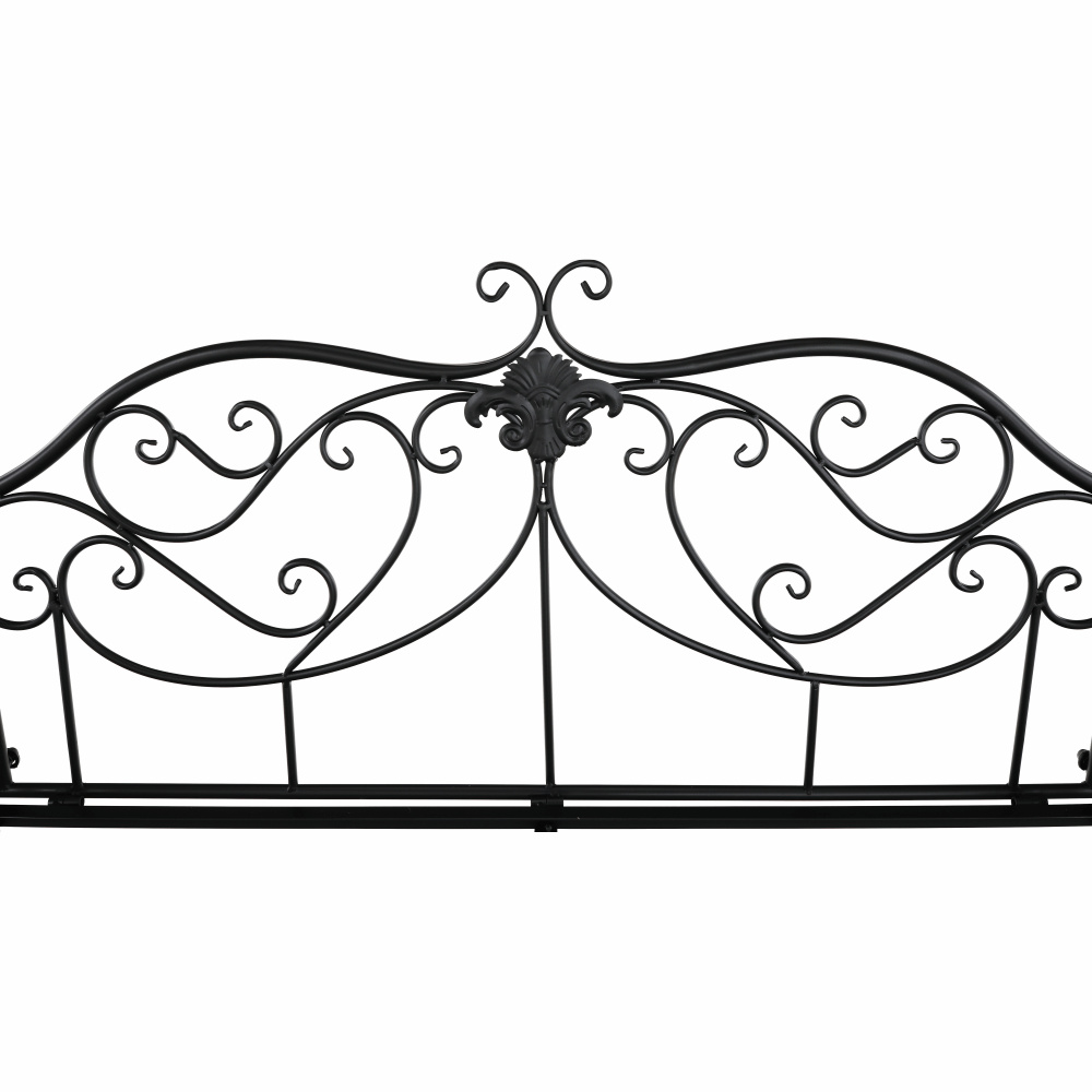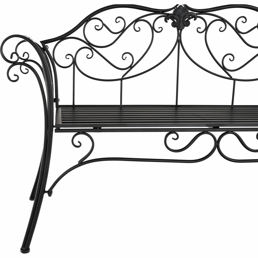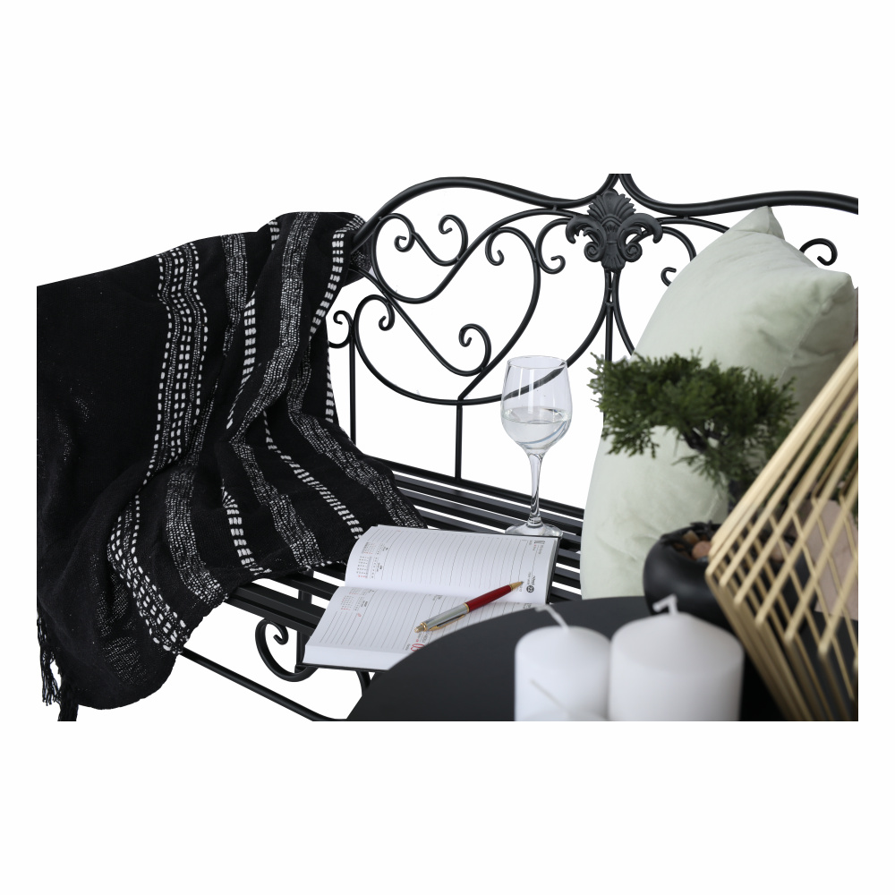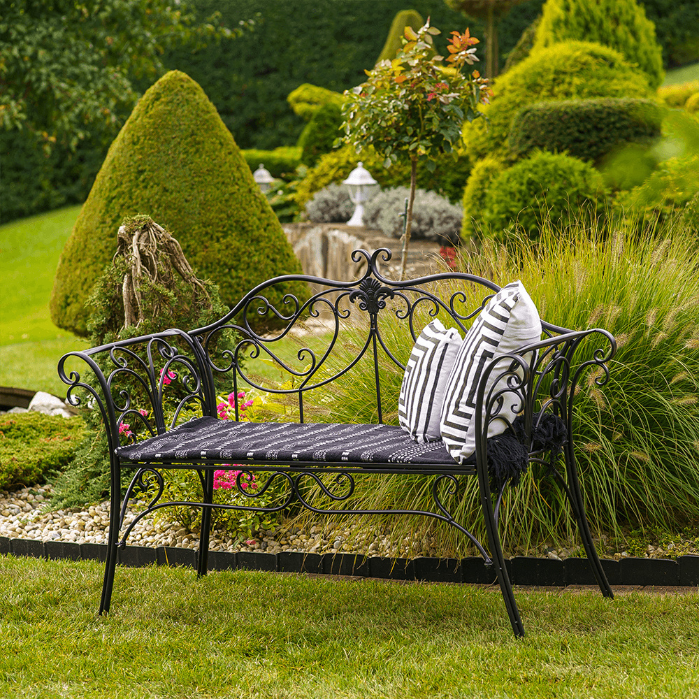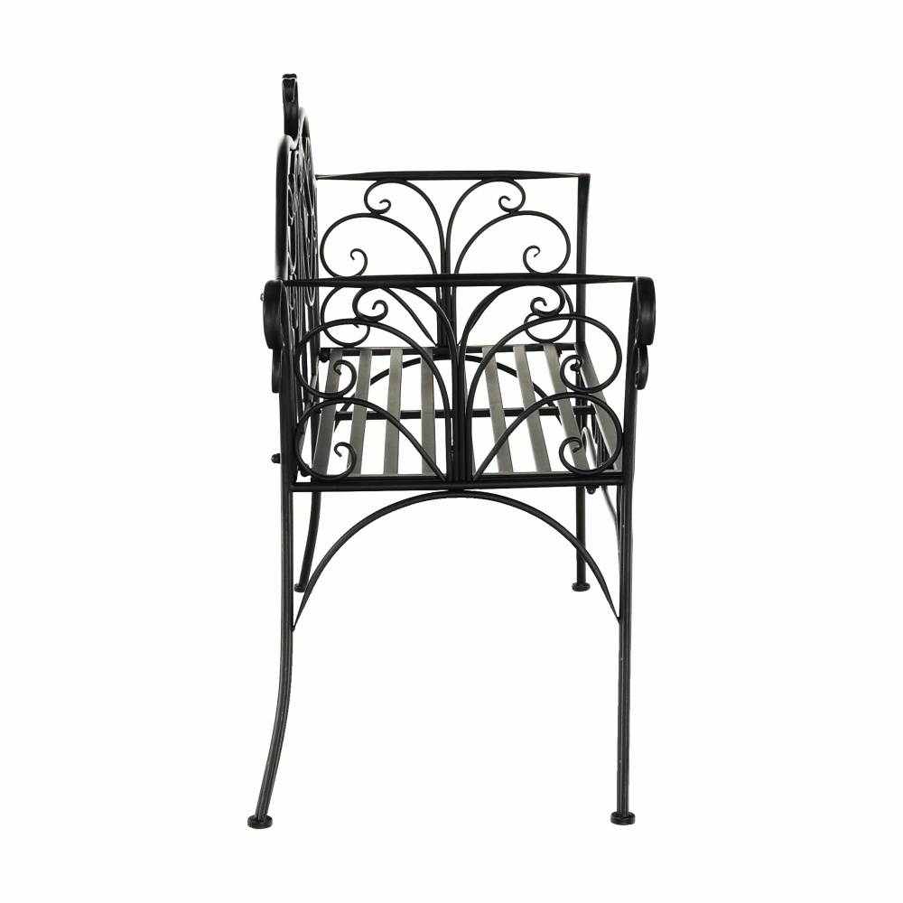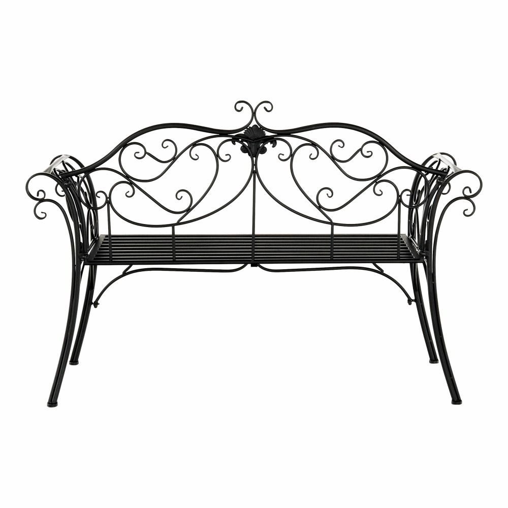Materiál: ocel Barva: černá Rozměry (ŠxHxV): 127x60x85 cm Šířka sedu: 121 cm Výška sedu: 40 cm Hloubka sedu: 41,5 cm Nosnost: 170 kg romantický vzhled S ozdobnými prvky Dodávané v demontu Hmotnost: 15.5kg