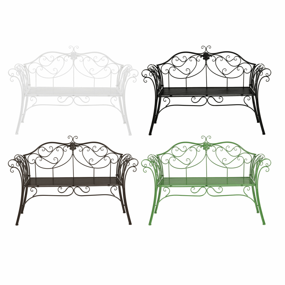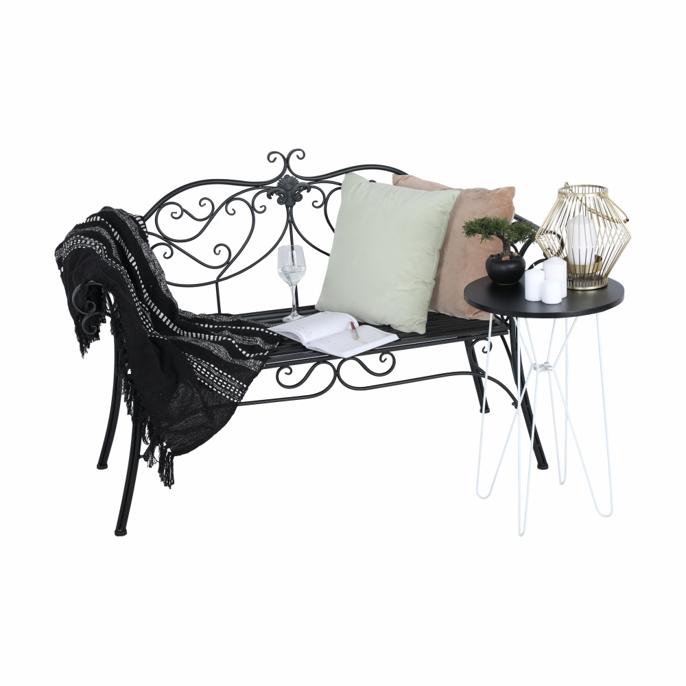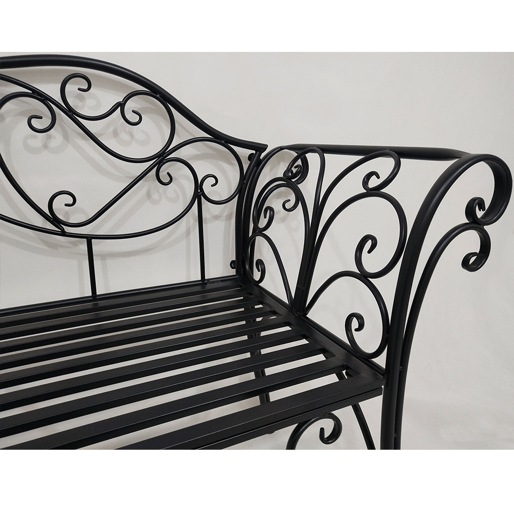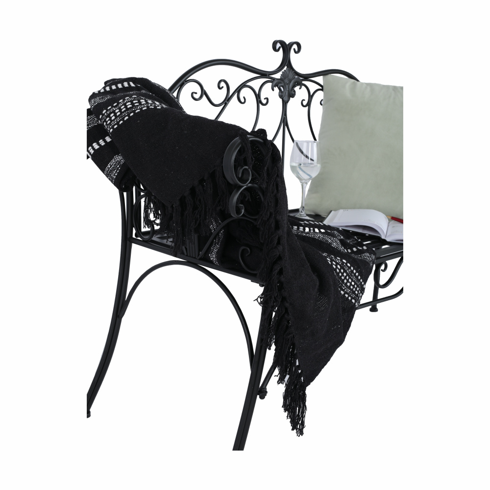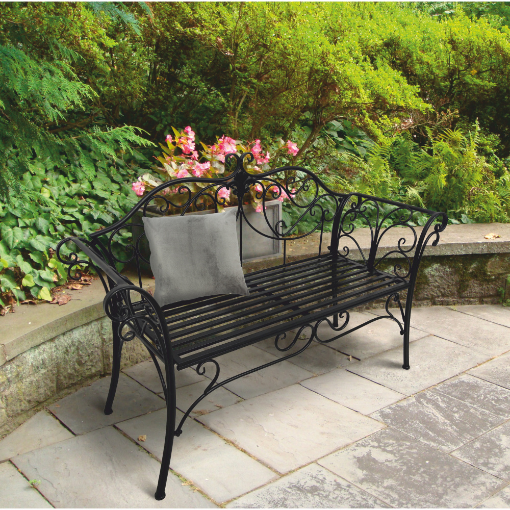Materiál: ocel Barva: černá Rozměry (ŠxHxV): 127x60x85 cm Šířka sedu: 121 cm Výška sedu: 40 cm Hloubka sedu: 41,5 cm Nosnost: 170 kg romantický vzhled S ozdobnými prvky Dodávané v demontu Hmotnost: 15.5kg