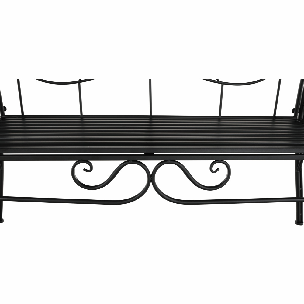 Materiál: kov Barva: černá Rozměry (ŠxHxV): 114x42x210 cm Šířka sezení: 110 cm Výška sezení: 46 cm Hloubka sezení: 40 cm Nosnost: 160 kg Hmotnost: 13 kg S pergolou Elegantní design Romantický vzhled Na zahradu nebo terasu Dodávána v demontu Hmotnost: 14.5kg