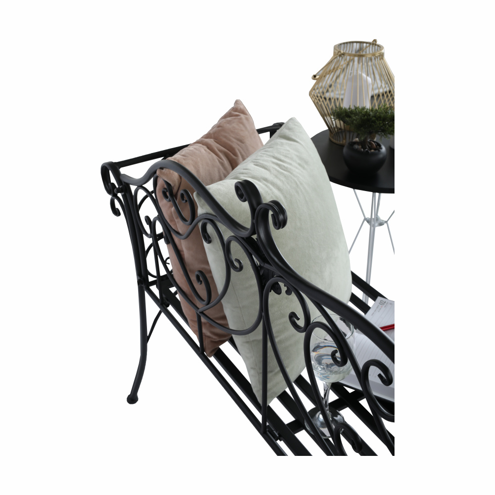 Materiál: kov Barva: černá Rozměry (ŠxHxV): 131x49x89 cm Výška sedu: 43 cm Hloubka sedu: 42 cm Šířka sedu: 98,5 cm Nosnost: 150 kg Dodávané bez polštářů romantický vzhled S ozdobnými prvky Dodávané v demontu