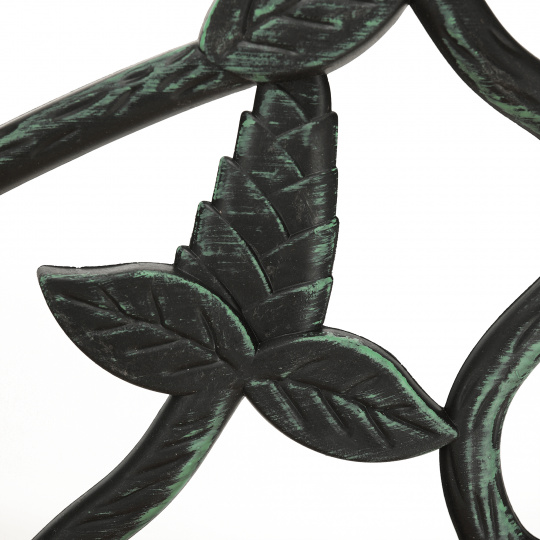 Materiál: kov Barva: zelená Rozměry (ŠxHxV): 131x49x89 cm Výška sedu: 43 cm Hloubka sedu: 42 cm Šířka sedu: 98,5 cm Nosnost: 150 kg Dodávané bez polštářů romantický vzhled S ozdobnými prvky Dodávané v demontu Hmotnost: 10.8kg