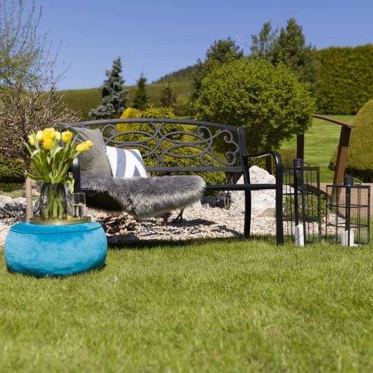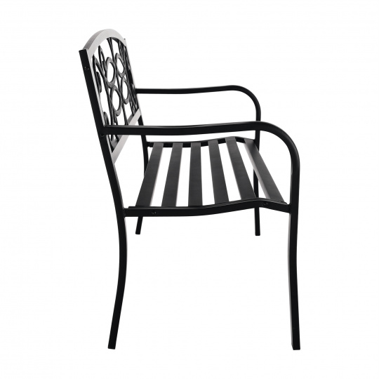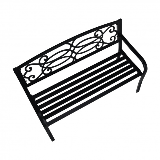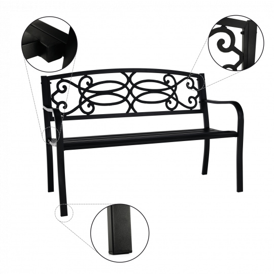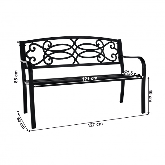 Materiál: ocel Barva: černá Rozměry (ŠxHxV): 127x60x85 cm Šířka sedu: 121 cm Výška sedu: 40 cm Hloubka sedu: 41,5 cm Nosnost: 170 kg romantický vzhled S ozdobnými prvky Dodávané v demontu