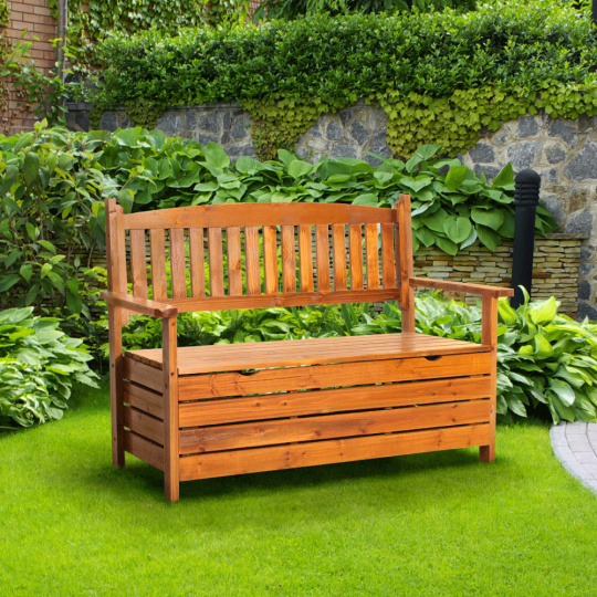 Materiál: dřevo Barva: hnědá Rozměry (ŠxHxV): 123,5x56x88 cm Výška sedu: 40 cm Hloubka sedu: 47 cm Šířka sedu: 108,5 cm S úložným prostorem Dodávané v demontu.