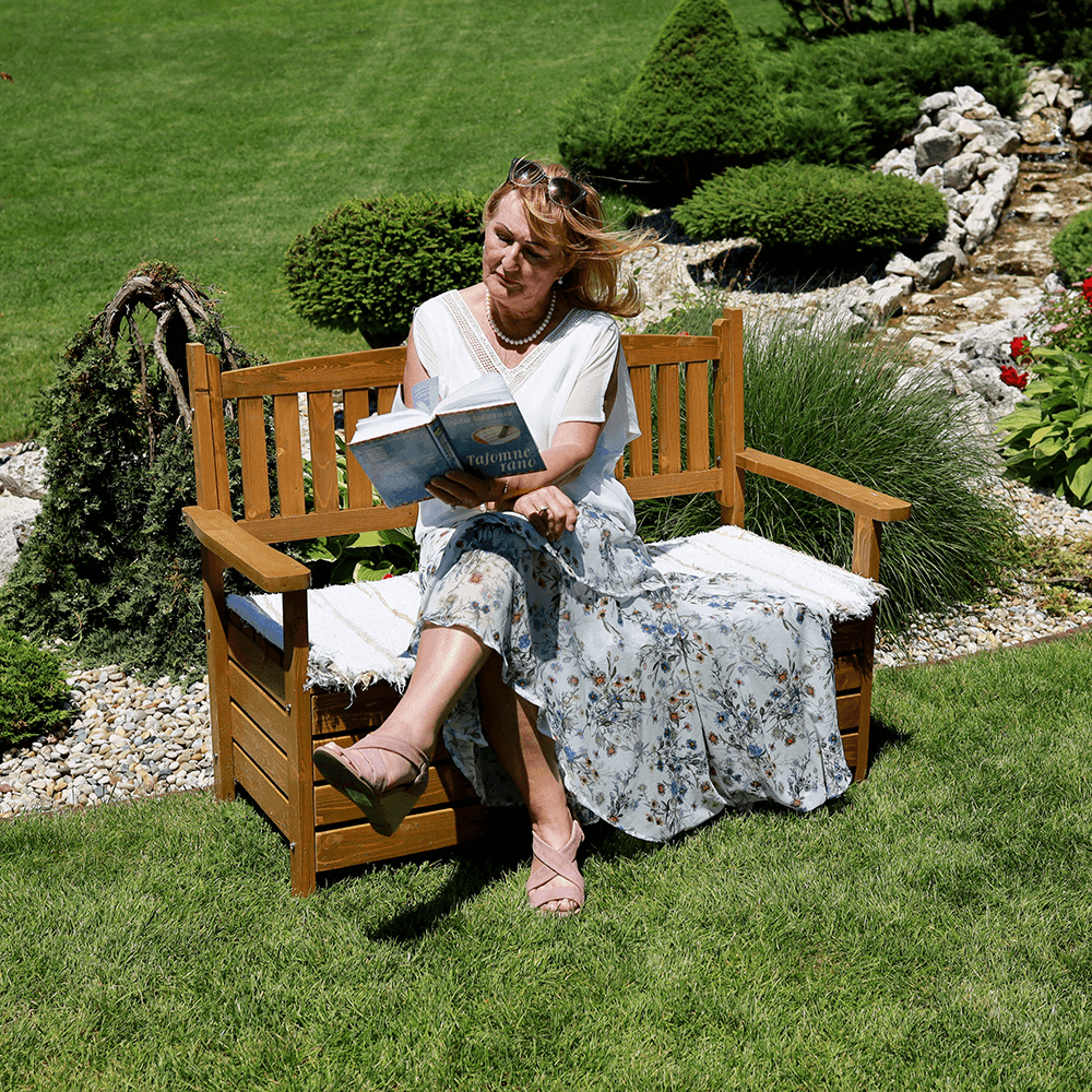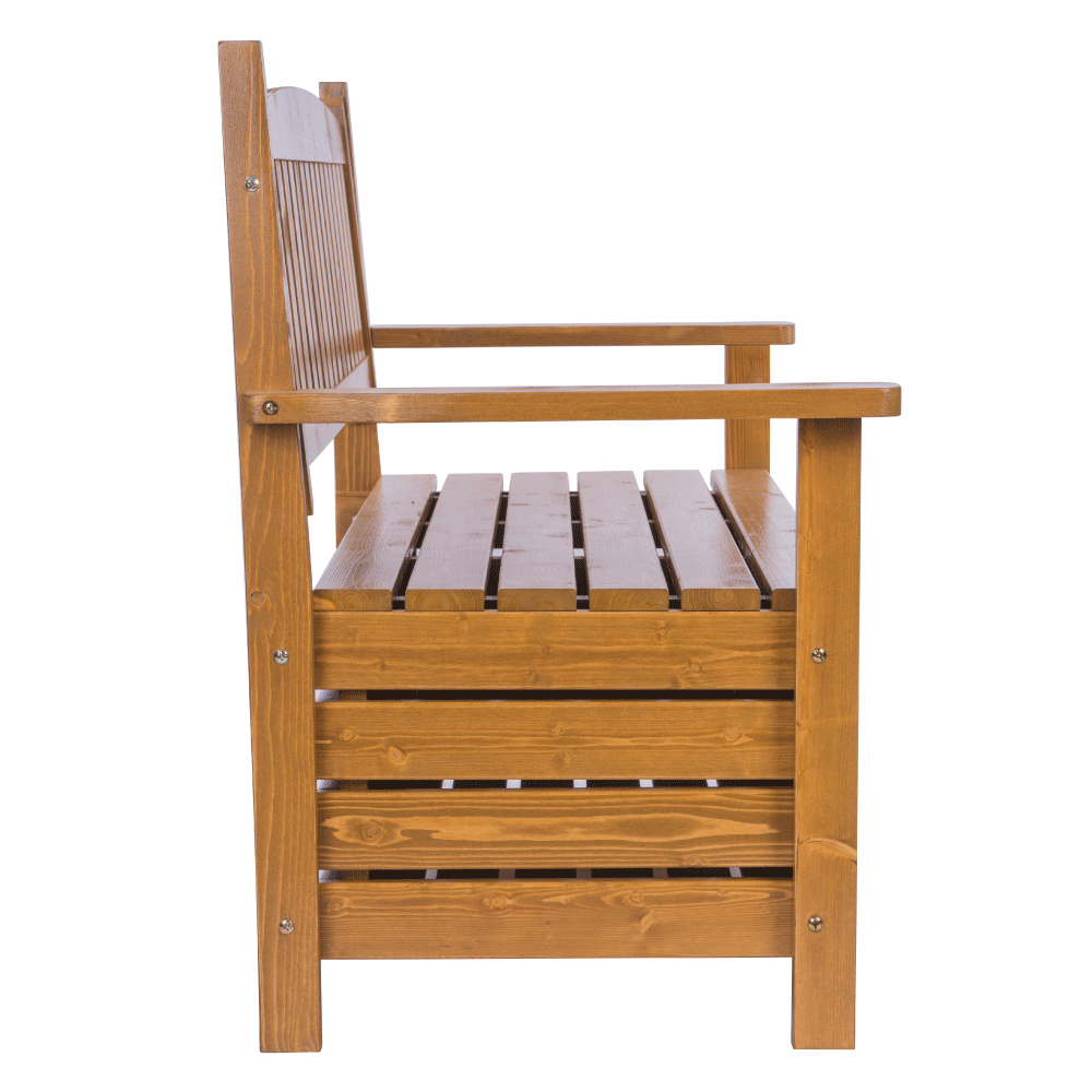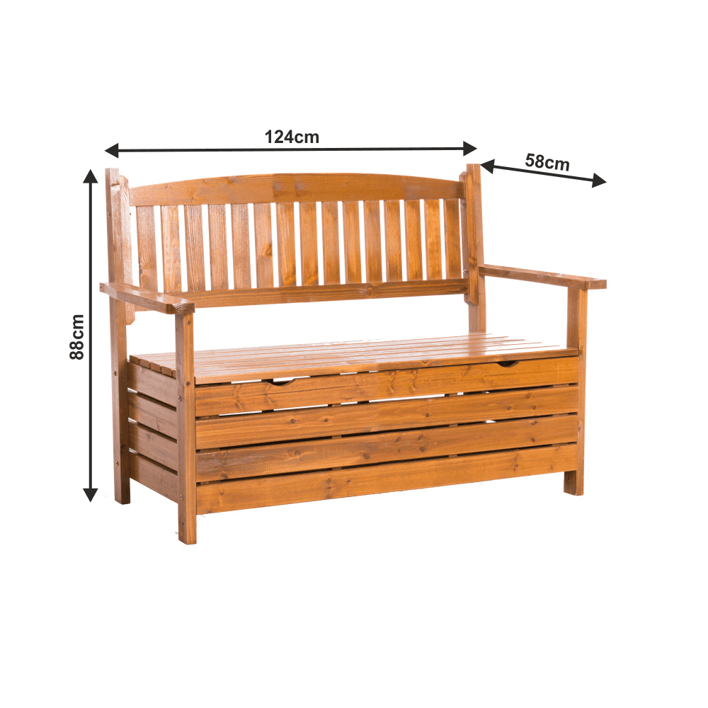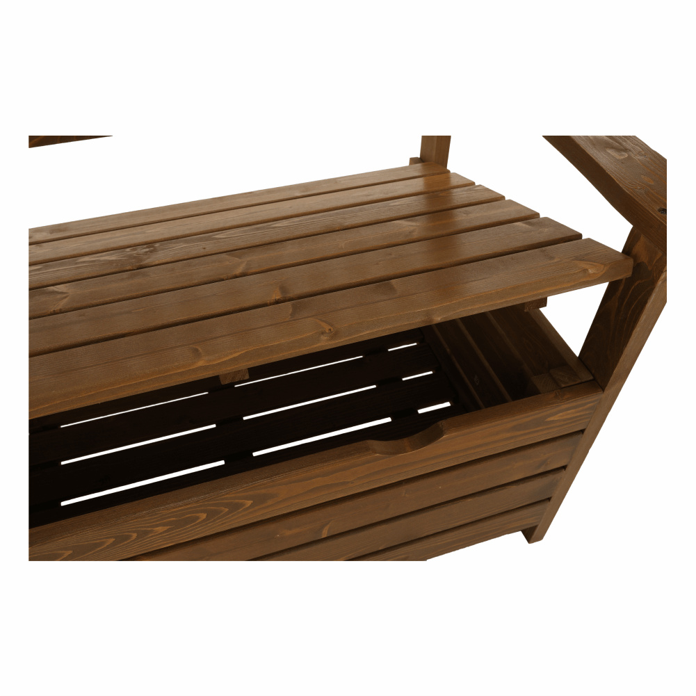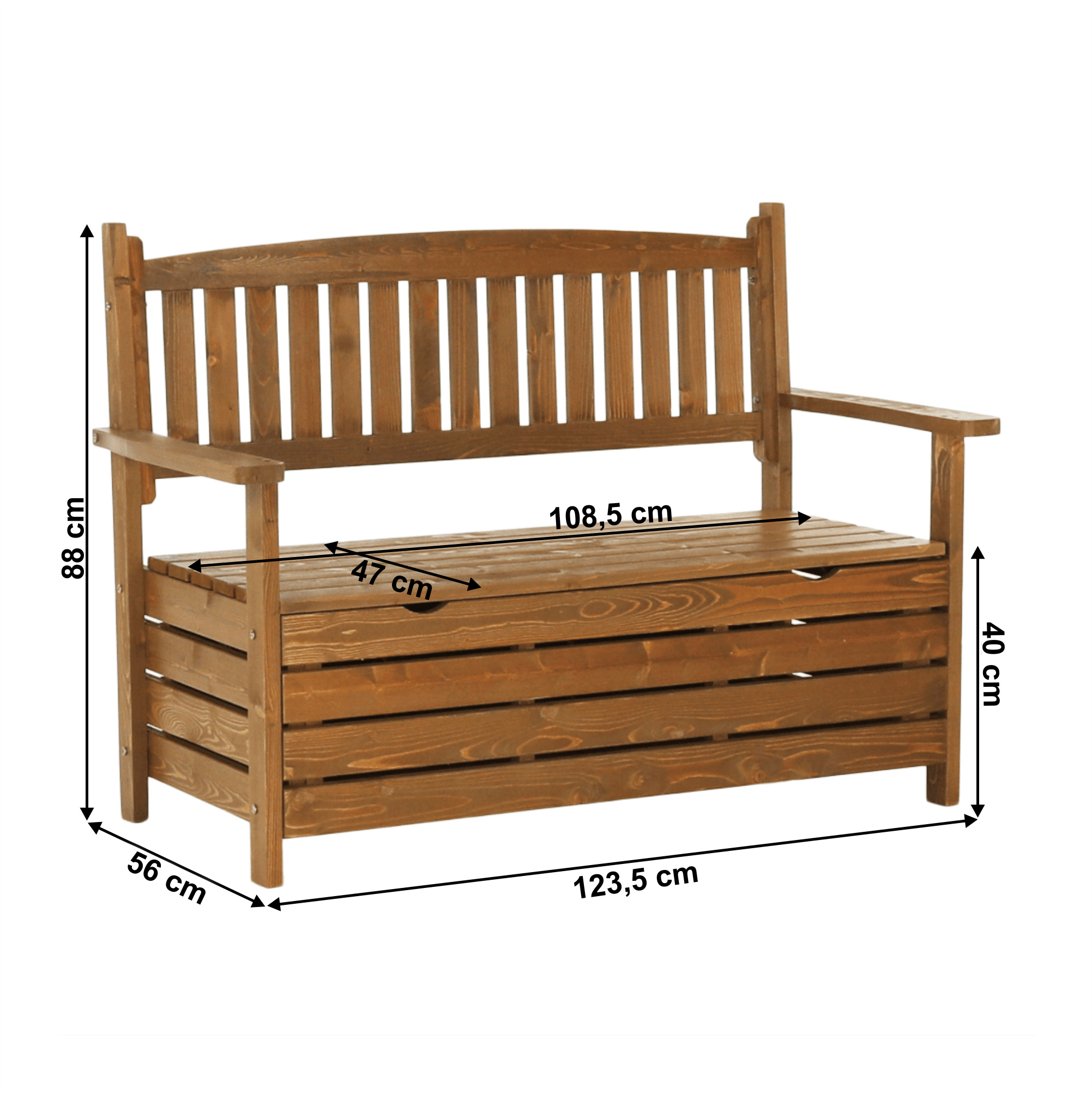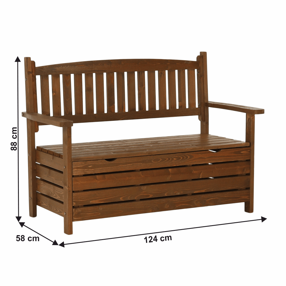 Materiál: dřevo Barva: hnědá Rozměry (ŠxHxV): 123,5x56x88 cm Výška sedu: 40 cm Hloubka sedu: 47 cm Šířka sedu: 108,5 cm S úložným prostorem Dodávané v demontu.