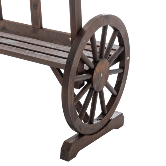 Materiál: borové dřevo Barva: hnědá Rozměry (ŠxHxV): 104x55x76 cm Šířka sezení: 95,5 cm Výška sezení: 38 cm Hloubka sezení: 35 cm Výška opěrky zad: 38 cm Průměr kola: 54,5 cm Tloušťka materiálu: 1,8-4,5 cm Nosnost: 170 kg Opěrky na ruku ve tvaru kola Na zahradu nebo terasu Venkovský styl Odolný vůči povětrnostním podmínkám Doporučujeme výrobek chránit před nepříznivými povětrnostními podmínkami, aby se prodloužila životnost výrobku Dodávána v demontu
