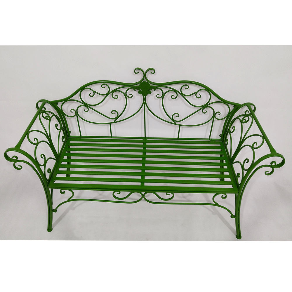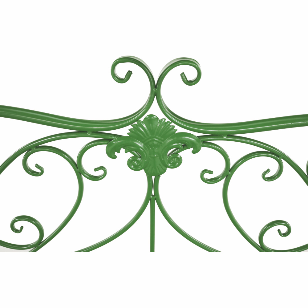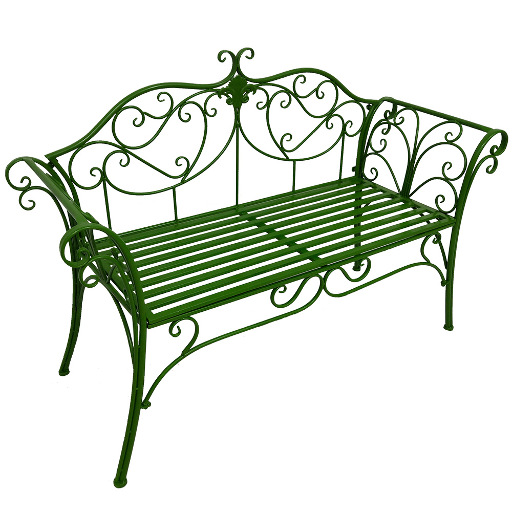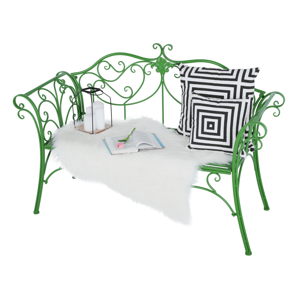 Materiál: kov Barva: zelená Rozměry (ŠxHxV): 131x49x89 cm Výška sedu: 43 cm Hloubka sedu: 42 cm Šířka sedu: 98,5 cm Nosnost: 150 kg Dodávané bez polštářů romantický vzhled S ozdobnými prvky Dodávané v demontu