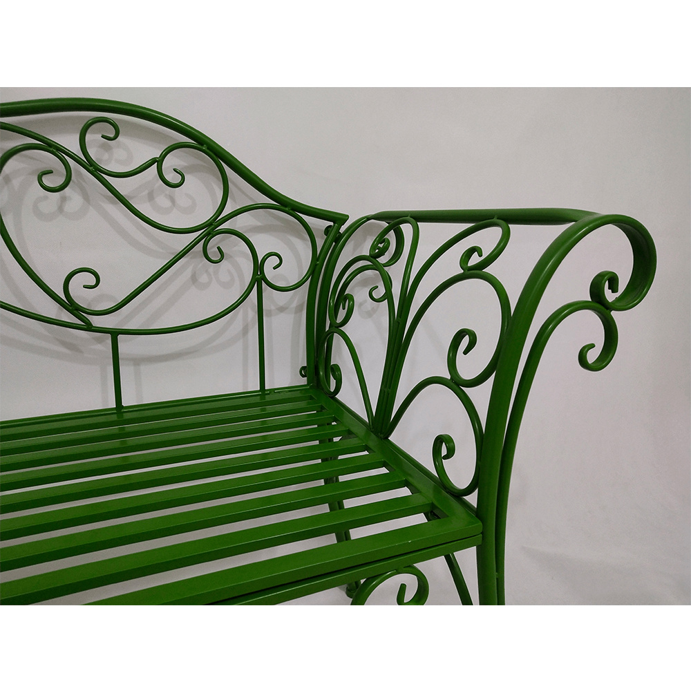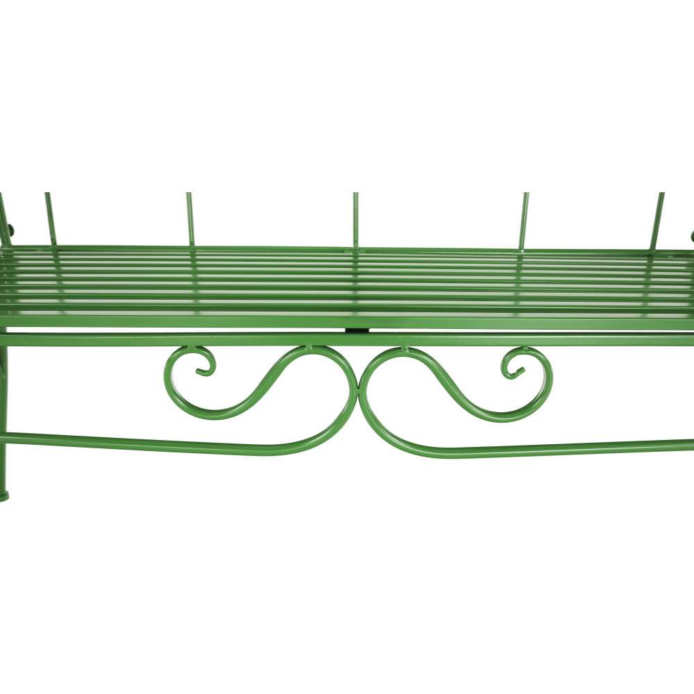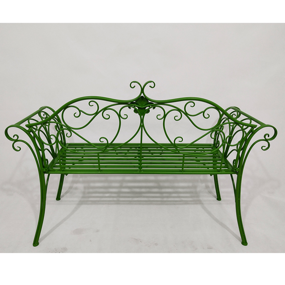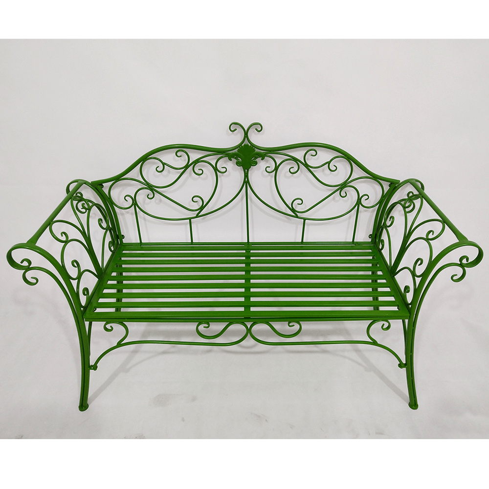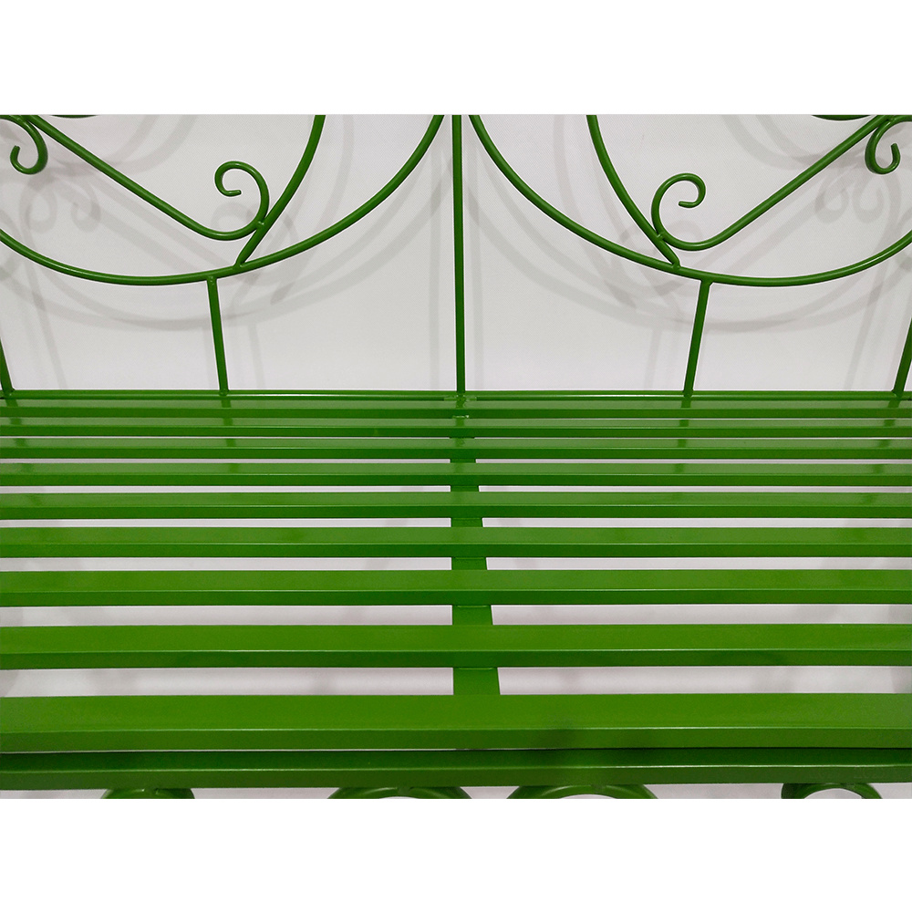 Materiál: kov Barva: zelená Rozměry (ŠxHxV): 131x49x89 cm Výška sedu: 43 cm Hloubka sedu: 42 cm Šířka sedu: 98,5 cm Nosnost: 150 kg Dodávané bez polštářů romantický vzhled S ozdobnými prvky Dodávané v demontu