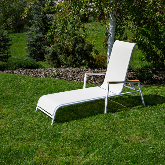 Zahradní lehátko, bílá ocel/dub, BONTO