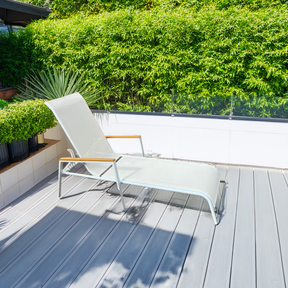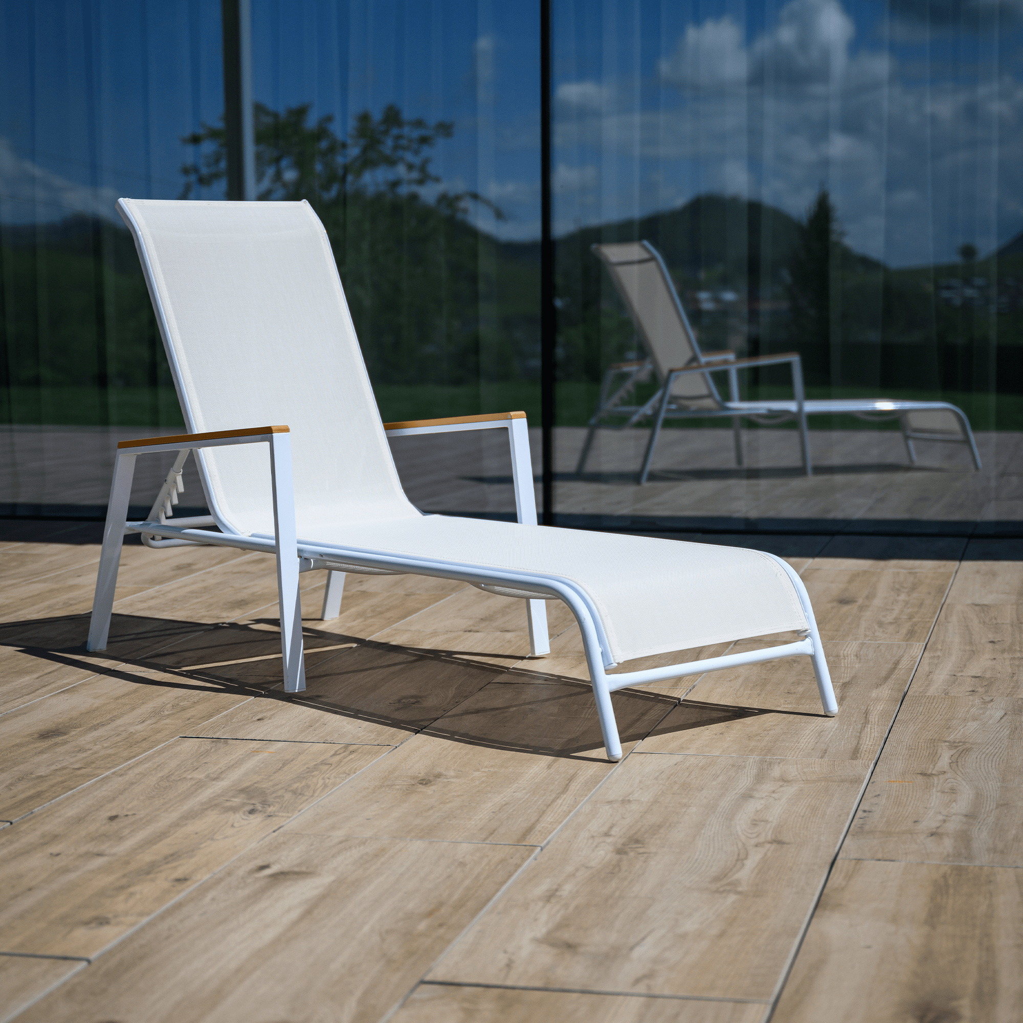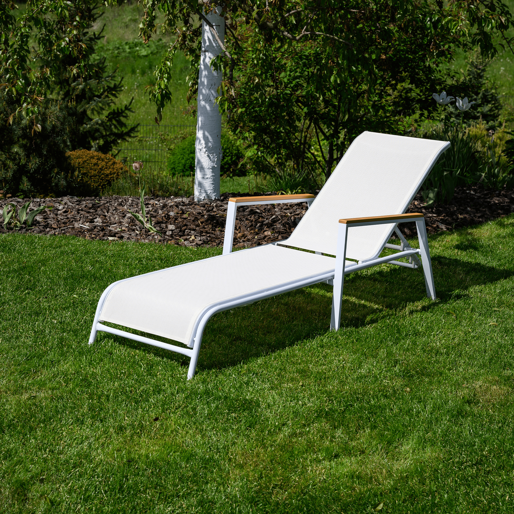 Zahradní lehátko, bílá ocel/dub, BONTO