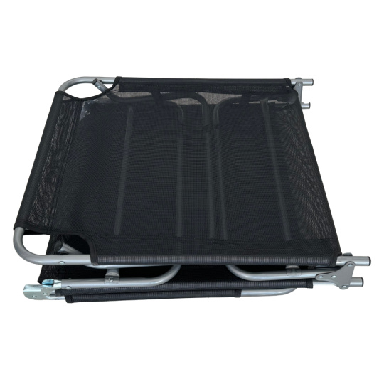 Materiál: ocel/umělá textilie Barva: šedá/černá Rozměry (ŠxHxV): 58x182x30/79 cm Výška sedu: 24 cm Nosnost: 90 kg Hmotnost: 3,2 kg Zahradní skládací lehátko Polohovací 5 pozic sklápění opěradla Lze sklopit i podnožku Vhodné na zahradu, terasu, k bazénu, na balkon Jednoduchá manipulace a přesun Dodáváno v monte