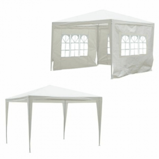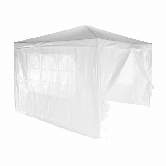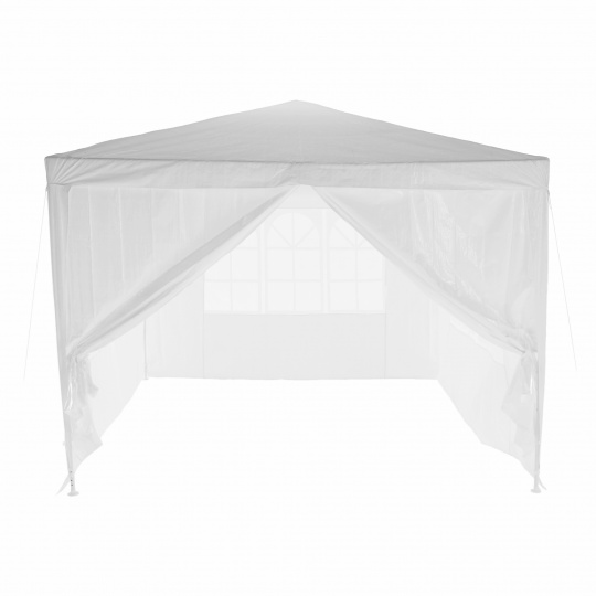 Materiál: 100% polyethylen / ocel Barva: bílá Rozměry (ŠxHxV): 300x300x245 cm nepromokavý 4 boční stěny 3 průhledné okna Jedna stěna se zipem (vchod) Boční stěny snímatelné Odolný vůči UV záření Ochrana před slunečním zářením a lehkým deštěm Dodávané v demontu Doporučení výrobce: Nevystavujte stan nepříznivým povětrnostním podmínkám a silnému dešti. Stan se nedoporučuje používat v zimních měsících, kdy je riziko těžkých sněhových nánosů.