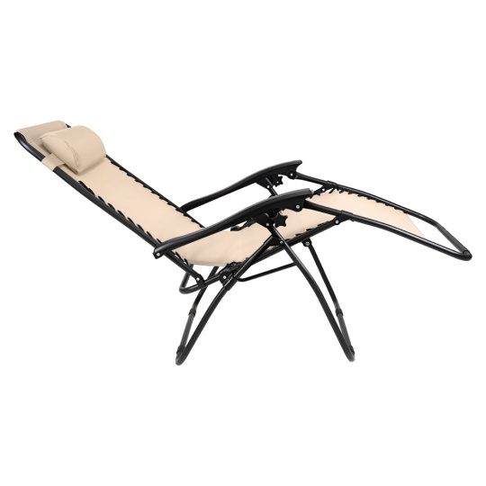 Materiál: umělá textilie/ocel Barva: béžová/černá Rozměry (ŠxHxV): 67x91/153x86/109 cm Rozměry po složení (ŠxHxV): 67x13x96 cm Výška sedu: 50 cm Hloubka sedu: 50/96 cm Šířka sedu: 45,5 cm Šířka opěrky zad: 53 cm Výška opěrky zad: 75 cm Výška opěrky na ruku od země: 60 cm Nosnost: 100 kg Hmotnost: 5,75 kg Skládací Polohovací S 5 stupni polohování Měkká opěrka hlavy Praktické Moderní design Dodáváno v monte